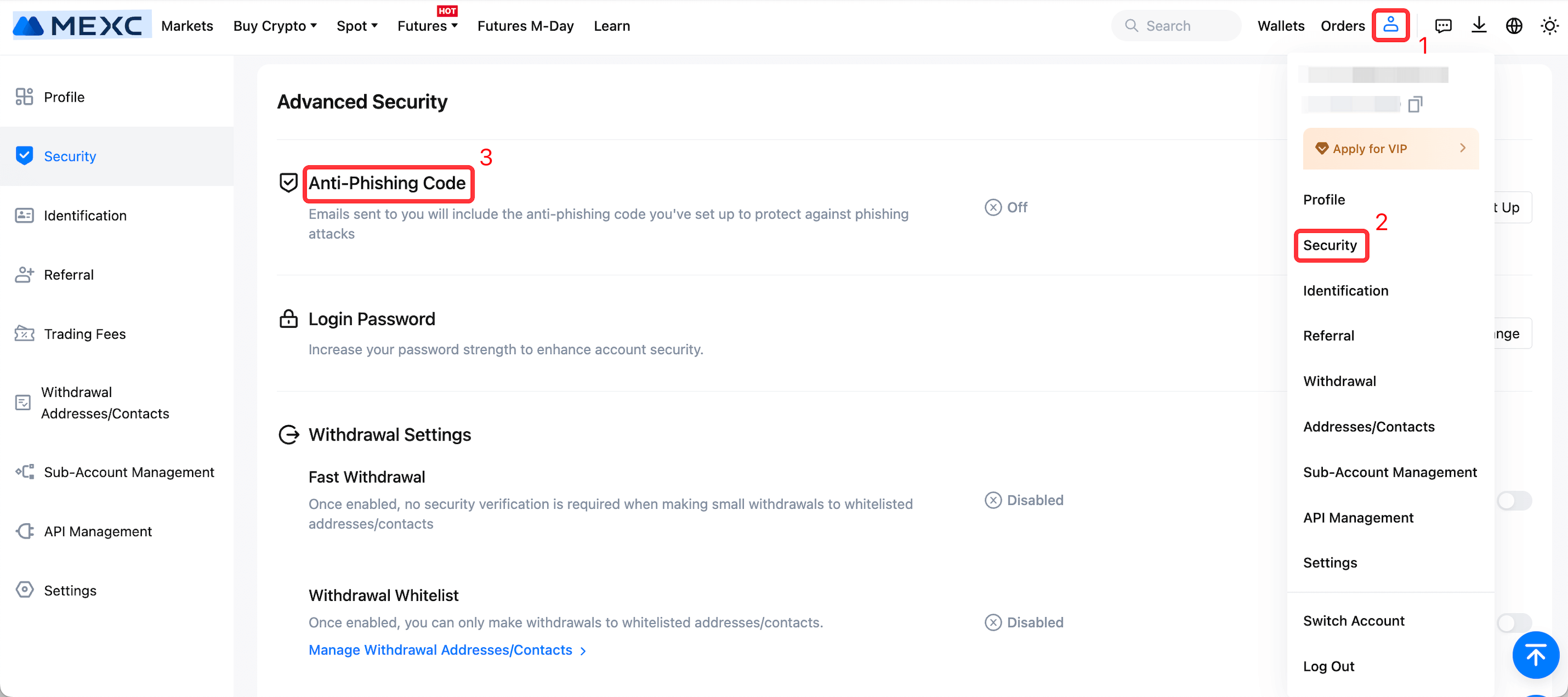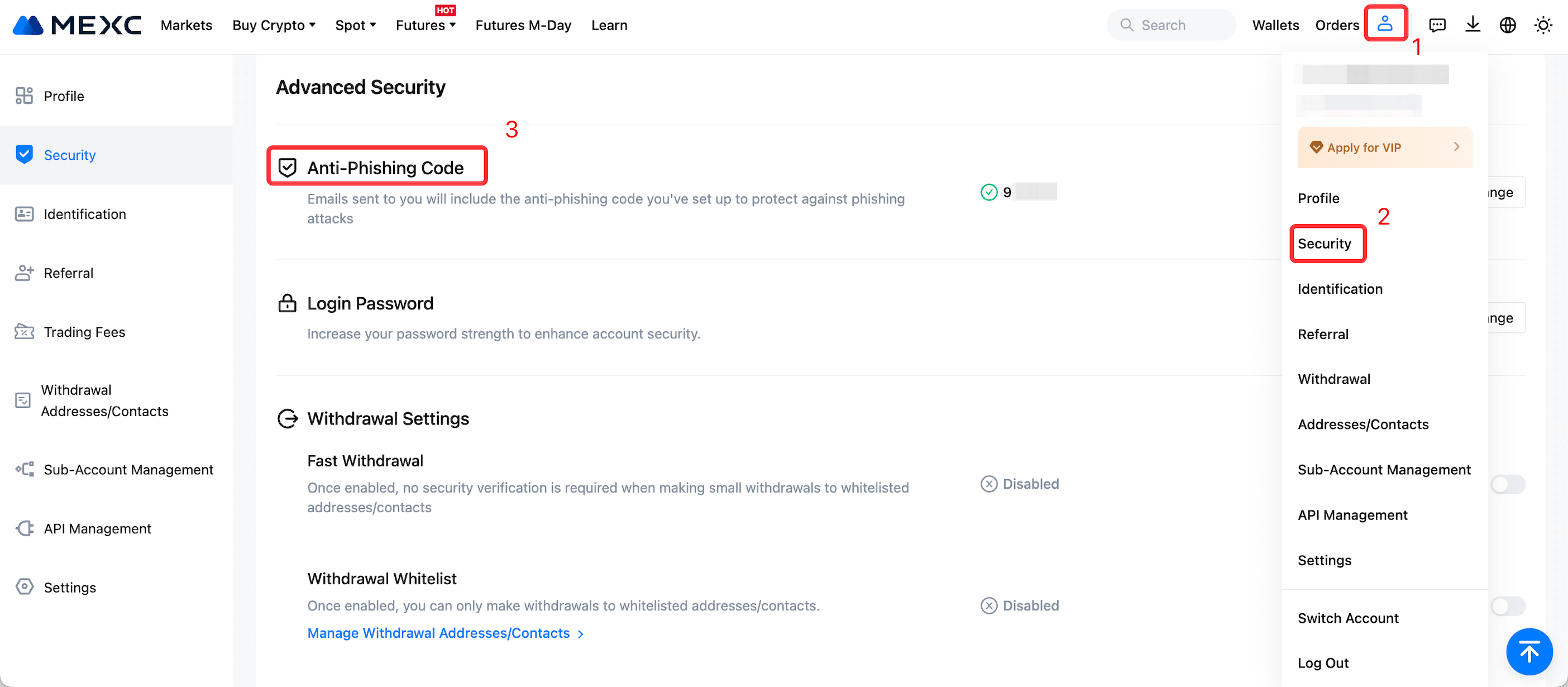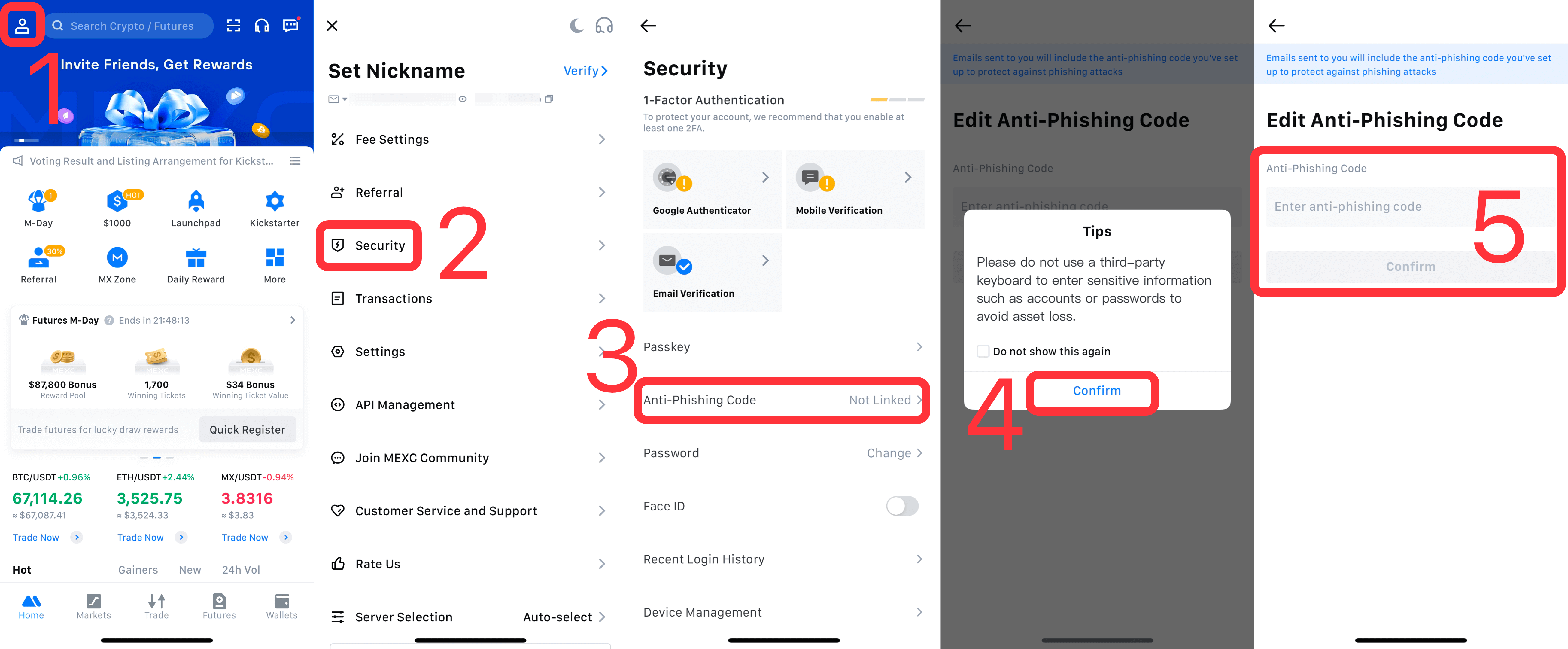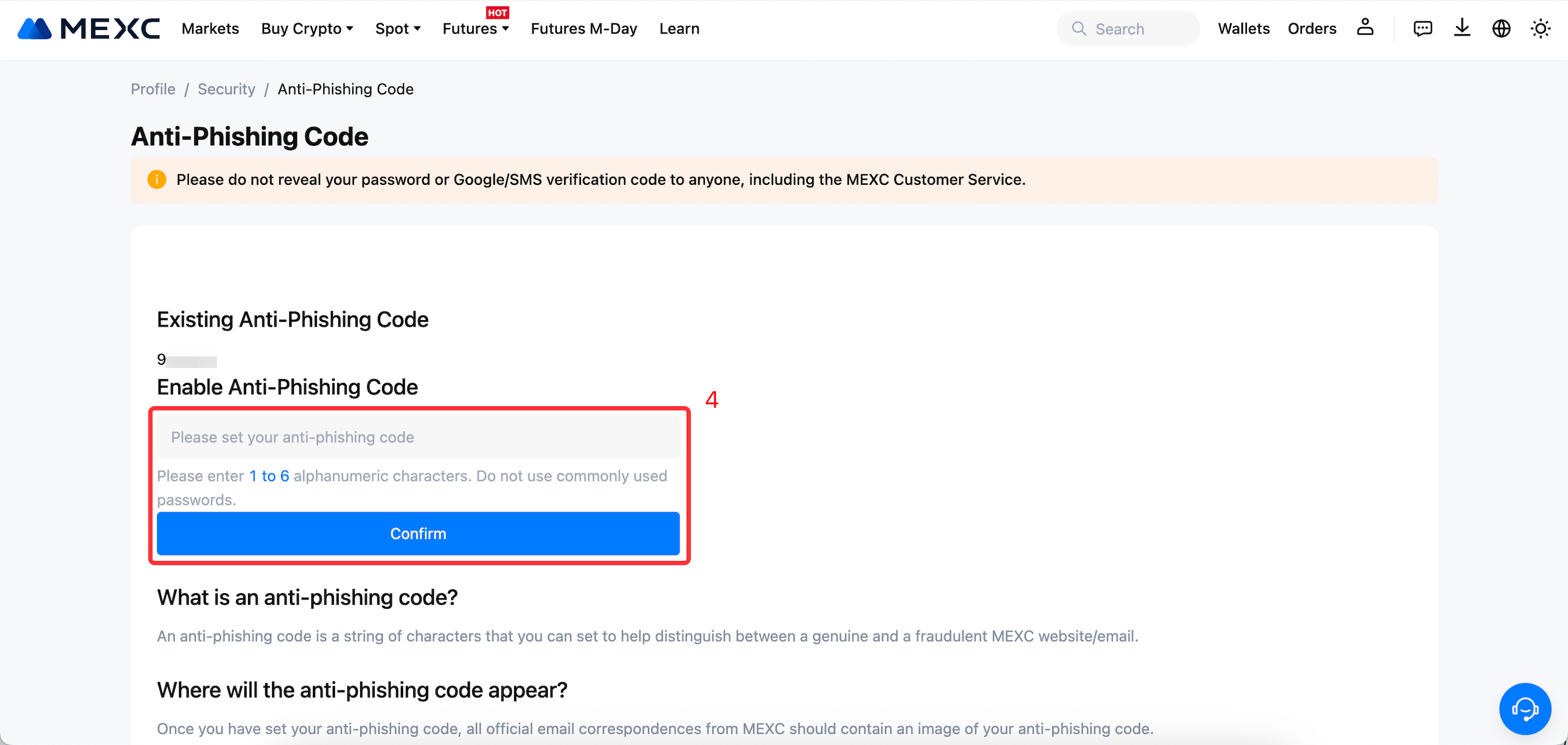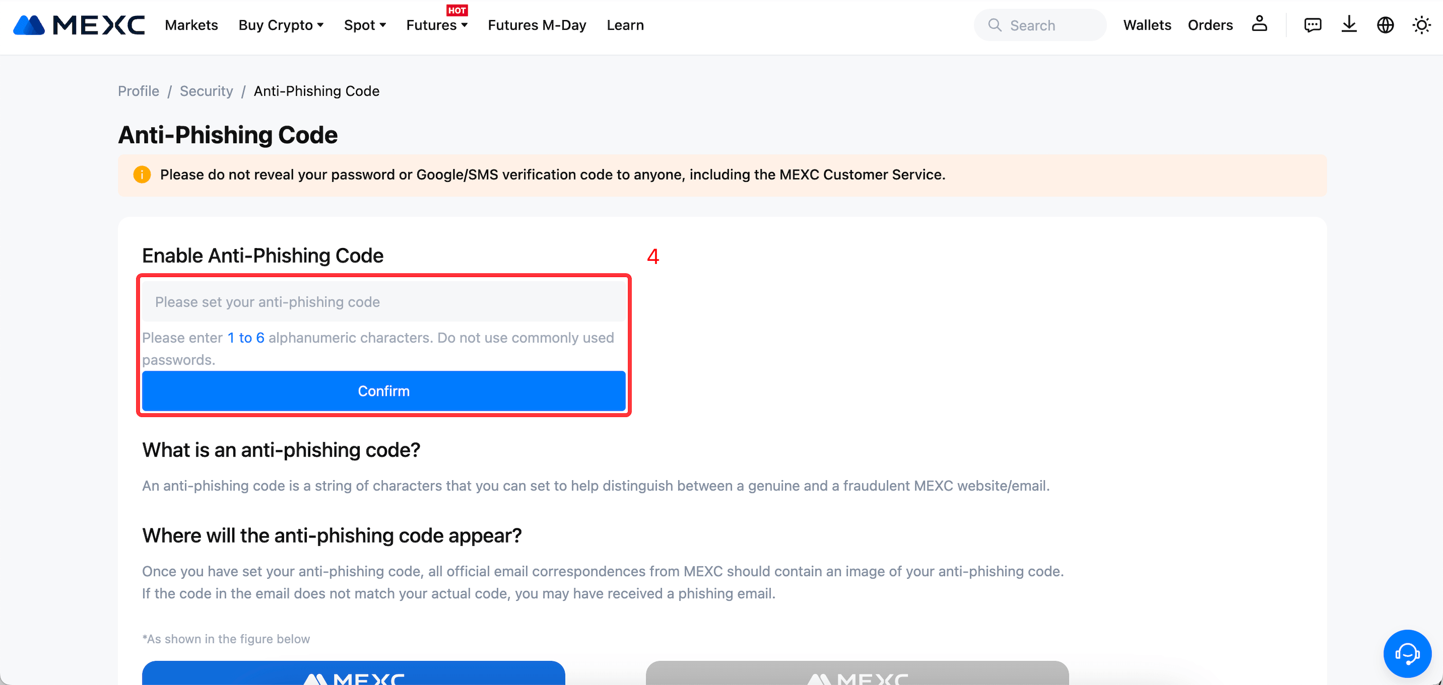 So richten Sie einen Anti-Phishing-Code auf MEXC ein