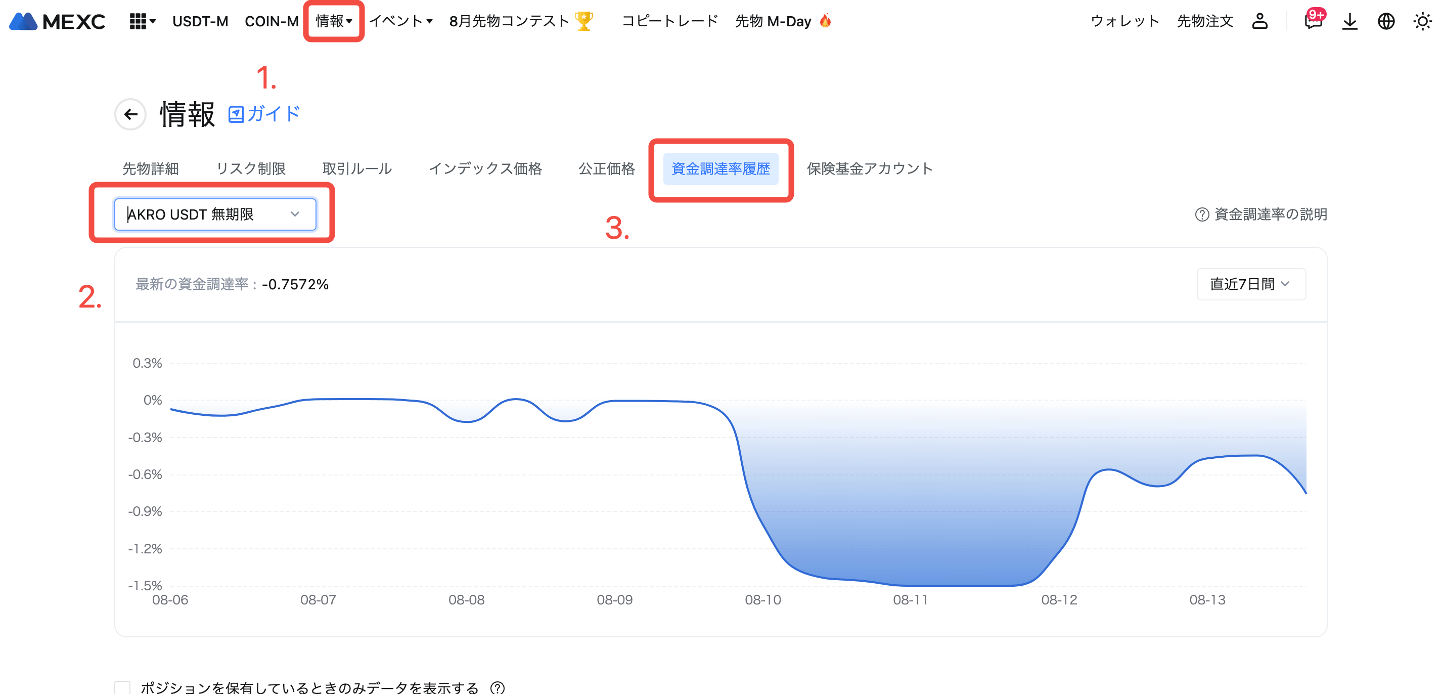 最新の資金調達率の詳細については、「情報 - 資金調達率履歴」をご参照ください。