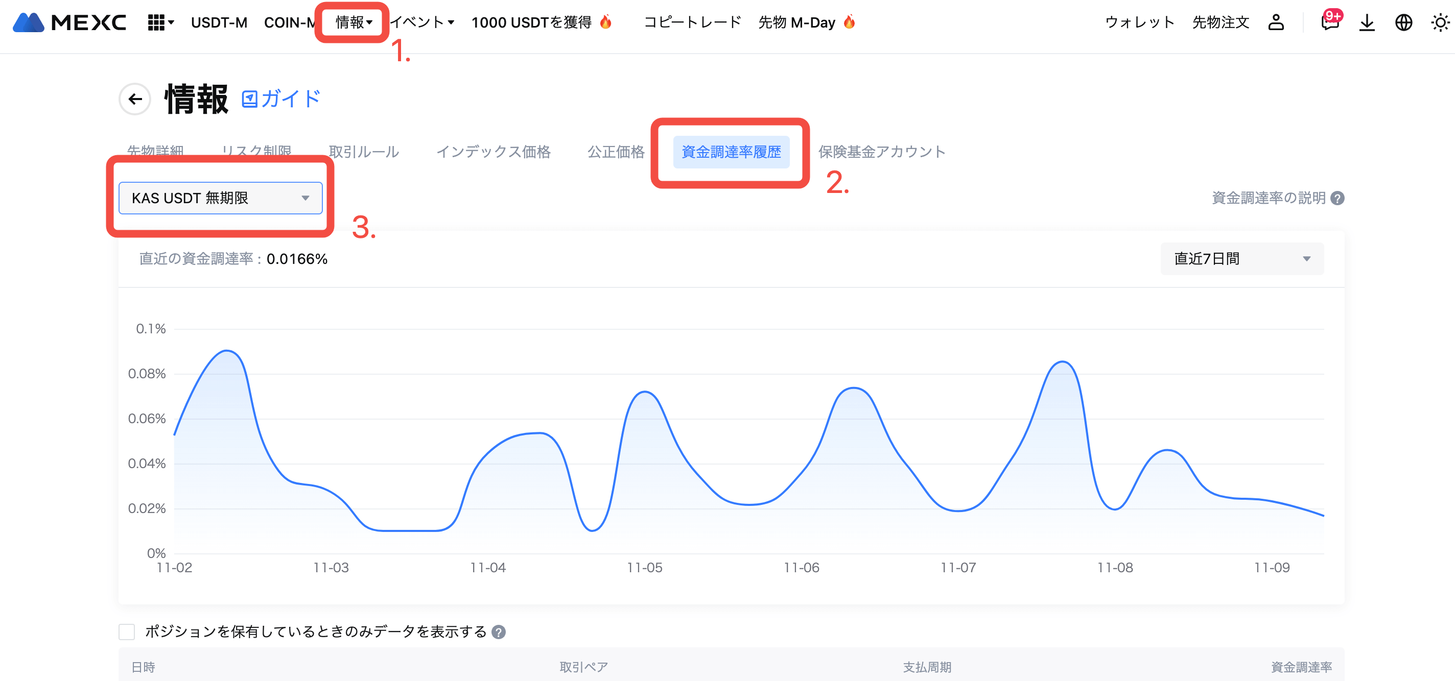 日時 (日本時間) | KASUSDT 先物最大資金調達率 |