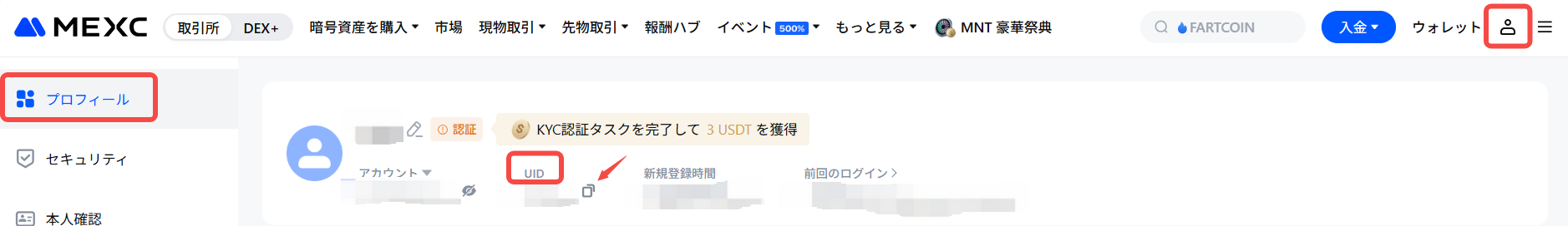 MEXCにログインし、[プロフィール] にアクセスしてUIDをコピーします: