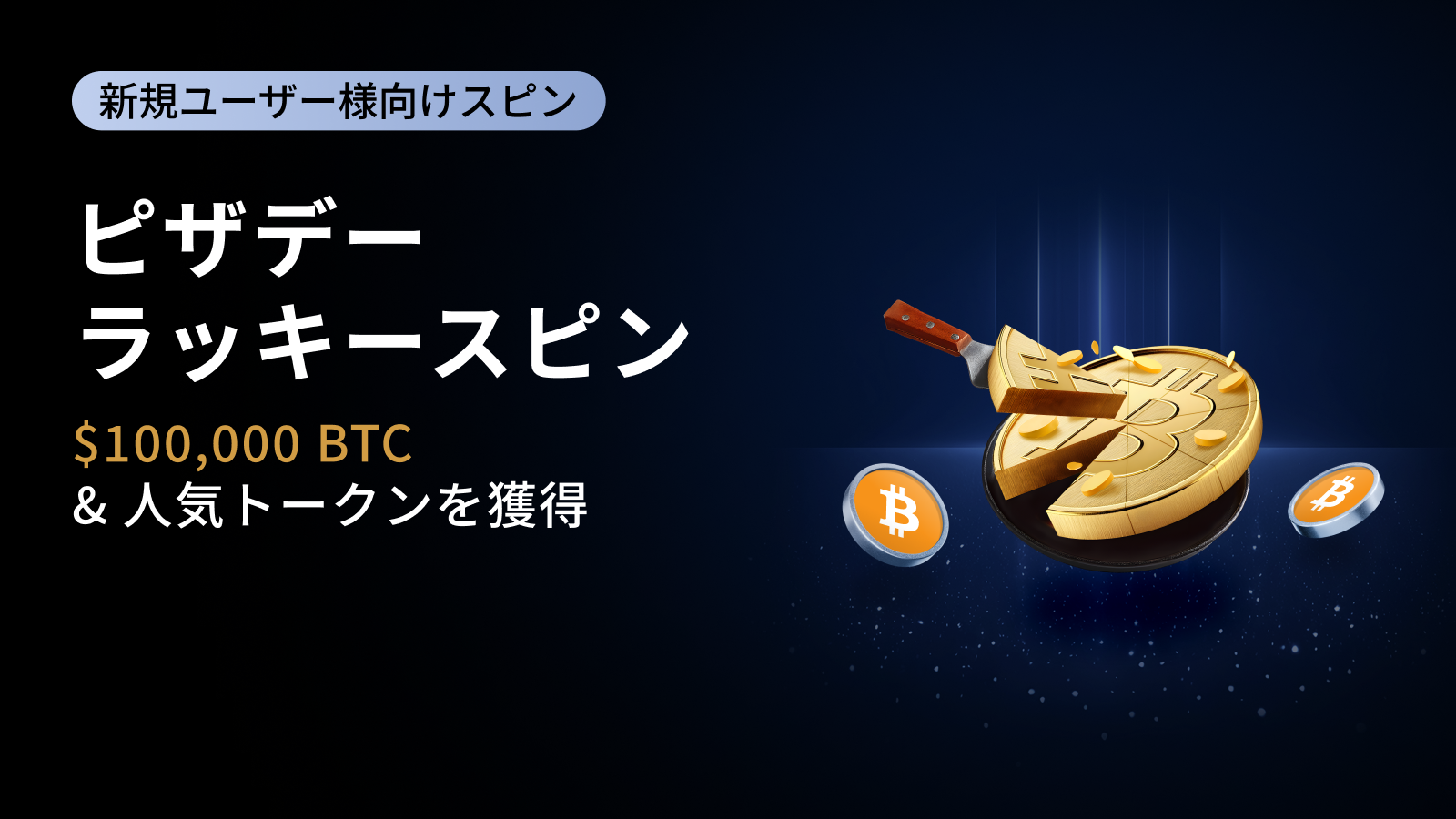 今年のピザデーを暗号資産の報酬で祝おう!ピザデーラッキースピンを回して、$100,000以上のBTCやその他の人気トークンを獲得しよう。