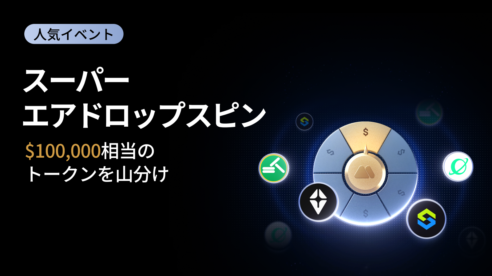 MEXCは、$100,000相当のトークンを山分けできるチャンス「スーパーエアドロップスピン」をお届けします。前回のAirdrop+ イベントを逃した方も、今回は豪華報酬を手にする絶好のチャンスです!