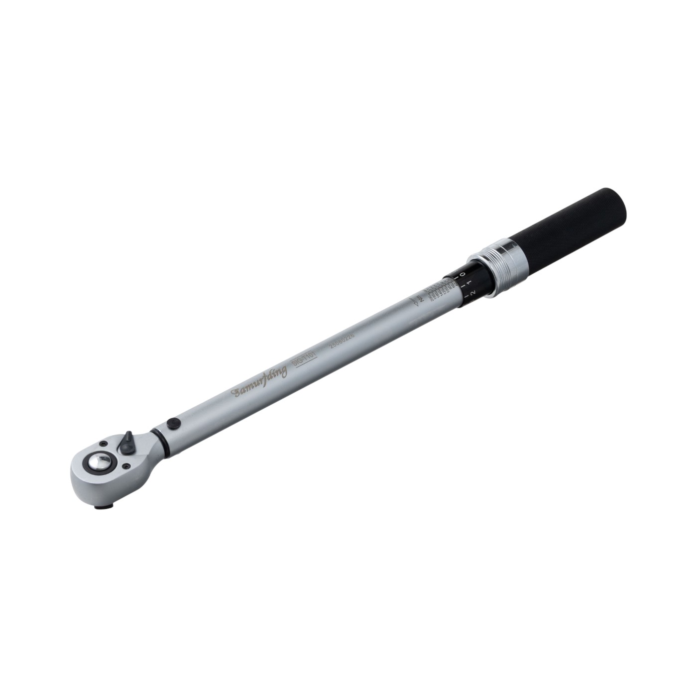 アストロプロダクツの「1/2DR プリセット型トルクレンチ」は、アストロプロダクツのファンなら十分候補に入ります。トルクメーターで設定したトルク値との誤差を確認すると、誤差はわずか2.4%と精度の高さが魅力です。クリップを回してトルク値を設定する機械式で、規定値に達するとカチッとした軽い音と振動で知らせます。達した瞬間に完全に手を止めるのは難しいため、ゆっくり操作するのがポイントです。回転のたびにはめ直す必要がないラチェット式で、重さも1.06kgと軽量。長時間の作業でも疲れを感じにくく快適に作業できるでしょう。一方、支点と力点の距離が32.7cmと短めで、作業に力が必要な点は惜しいところです。柄の短さは収納面ではメリットで、全長44cmと省スペースで収納できます。国内メーカーながら5,000円台で購入できるところも利点(2024年8月時点)。低価格ながら正確さにも優れており、自動車整備にまだ慣れていない人にもおすすめですよ。
