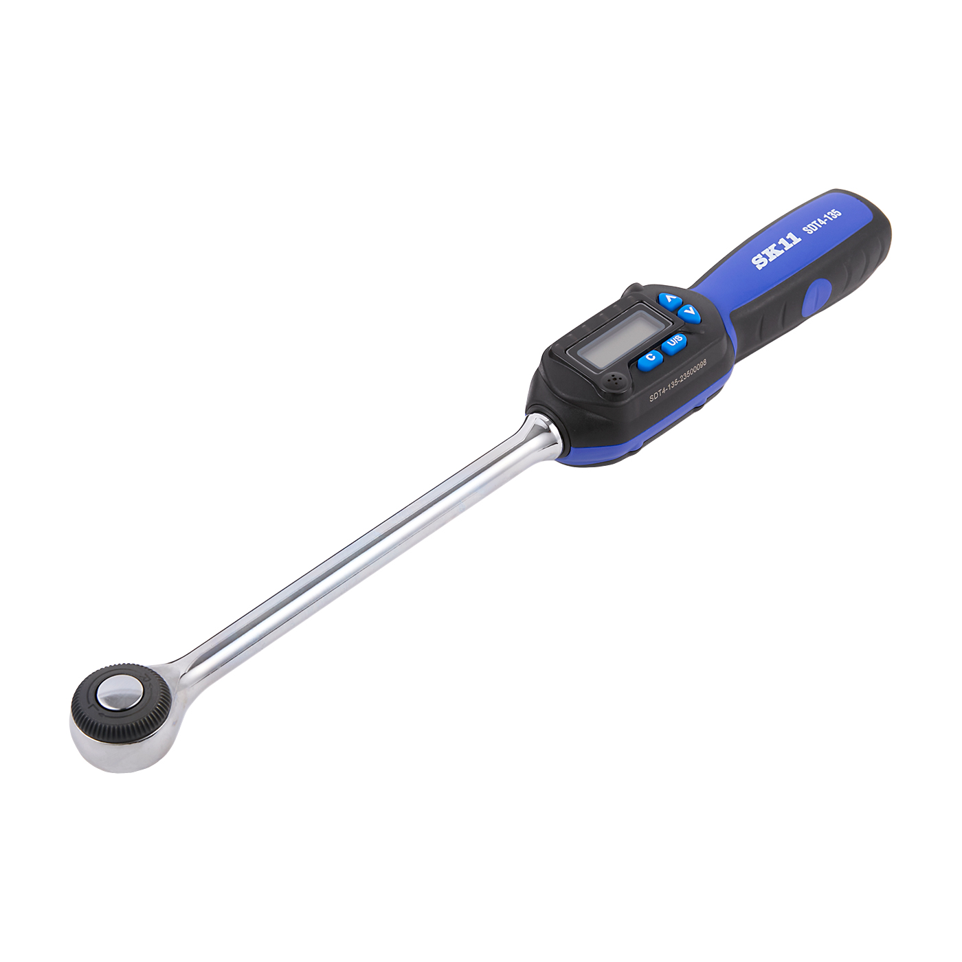 藤原産業の「SK11 デジタルトルクレンチ」は、トルクレンチを探しているすべての人におすすめです。液晶画面にトルク値が表示されるデジタル型を採用。設定トルク値近くでアラームが鳴り始めるので、画面が確認できない体勢でもわかりやすいところがメリットです。繊細なトルク操作が必要なバイクの整備でも、オーバートルクを防ぎやすいでしょう。重さ0.66kgと軽量で、疲れにくいところもポイント。支点と力点の距離も32.6cmとちょうどよく、扱いやすさにも優れています。ラチェット式を採用しているため、回転するごとにヘッドをはめ直す作業を省け、スムーズなタイヤ交換が可能。全長は47.5cmと収納しやすい大きさで、工具箱のなかでも場所を取りにくいでしょう。正確さの検証では90N・mに設定して実際にトルクメーターで誤差を調査。その結果、誤差は2.4%とわずかで、非常に正確に締めつけられていました。テクニックいらずで正確なネジ締めができ、使い勝手も良好なトルクレンチです。扱いに慣れていない初心者にもおすすめですよ。