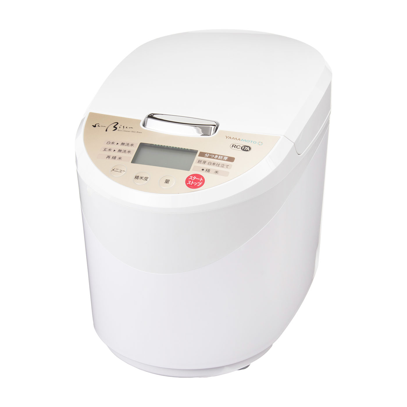 山本電気の「家庭用精米機 Shin Bisen YE-RC17A」は、稼動音によるストレスの少なさ・使い勝手のよさの評価は高いものの、肝心の炊飯後のおいしさは低評価。べたつきのある柔らかい食感が気になりました。精米後に欠け・割れはほとんど見られないものの、米の表面にわずかなざらつきがあります。とくに最大量5合での精米でざらつきが多かったので、多めに精米する人は注意しましょう。手入れが必要なパーツが4つと多いので手間がかかる点もネック。一方で、稼動音は66.3dBと小さめだったうえ、2分15秒と短時間で精米できました。本体にコース名が記載されているので迷わず操作でき、ワンタッチでフタが開閉できるのも便利です。5合サイズがほしくて稼動音・使い勝手を気にする人には向きますが、炊飯後のごはんの仕上がりに不満が残ります。おいしく食べたいならほかも検討してみましょう。
