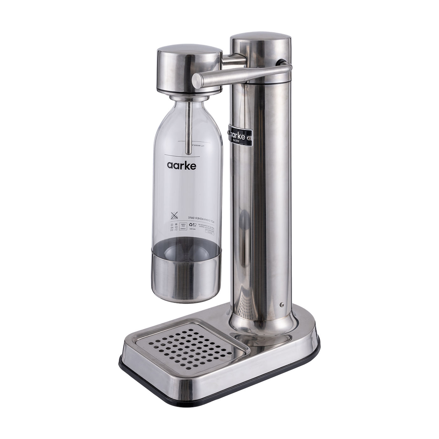Aarkeの「Carbonator Ⅲ AA-1203」は、シルバーカラーのスタイリッシュなデザインが特徴の商品。レバーを3回押して最も強いレベルで作った際の炭酸の強さは3.13GVと、強炭酸の基準とした3.5GVを下回る結果でした。本商品はガスがなくなるまで何度も使えるシリンダー式。カートリッジ式に比べてガスの交換頻度を抑えられます。シリンダーは家庭ゴミとして処分できないため、メーカーの回収サービスを利用してくださいね。一方、操作のしやすさはいまひとつです。ボトルは本体に差し込んでから回してセットする必要があり、うまくはまらず時間がかかることも。注入後はレバーが元に戻るのを待つだけとガス抜きは簡単ですが、ガス交換は本体を横にして、シリンダーを回して取りつける必要があります。片手で簡単に扱えないのはネックです。