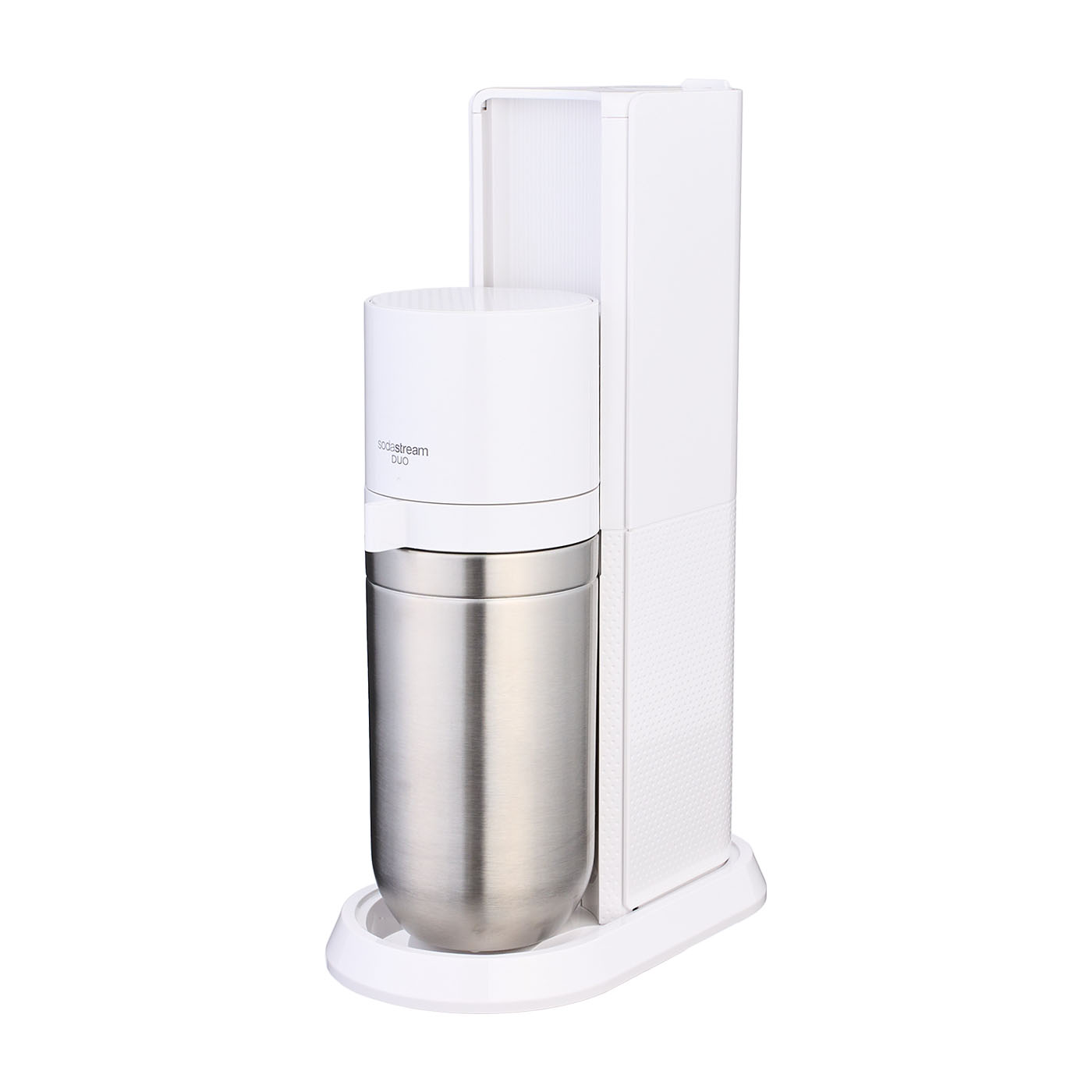 ソーダストリームの「SodaStream DUO(デュオ) スターターキット SSM1084」は、強炭酸が手軽に作れるのはもちろん、機能性とデザイン性を両立した商品がほしい人におすすめです。炭酸水を作ったところ、炭酸の強さは3.54GVと、市販の炭酸水以上の強さでした。また、洗練されたデザインは「レッド・ドット・デザイン賞」を受賞しています。カートリッジ式に比べてガス交換の頻度が少ない、シリンダー式を採用。シリンダークイックコネクト機能により、ガス交換時は本体を立てたままシリンダーを差し込めるので簡単ですよ。ただし、家庭ゴミとしての処分はできないため、使用後は新しいシリンダーとの交換が必要です。メーカーの回収サービスを利用しましょう。操作性も良好です。ボタンを押す回数を変更すれば、炭酸強度を自分好みに調整可能。フラスコ内にボトルを入れてから、炭酸注入ヘッドを押し下げつつフタを回して設置します。設置にはやや手間がかかるものの、注入後のガス抜きは自動なので手間が少ない印象です。
