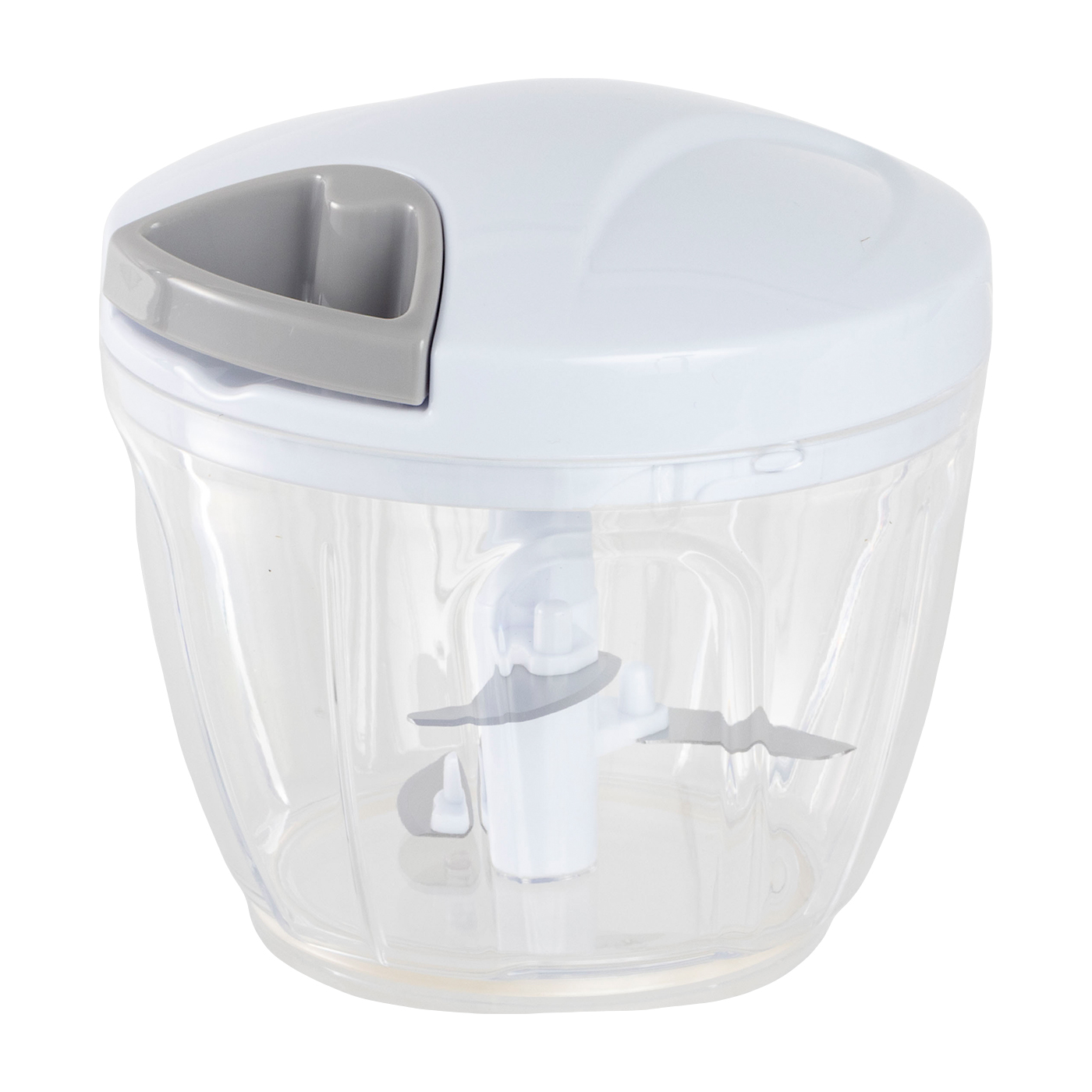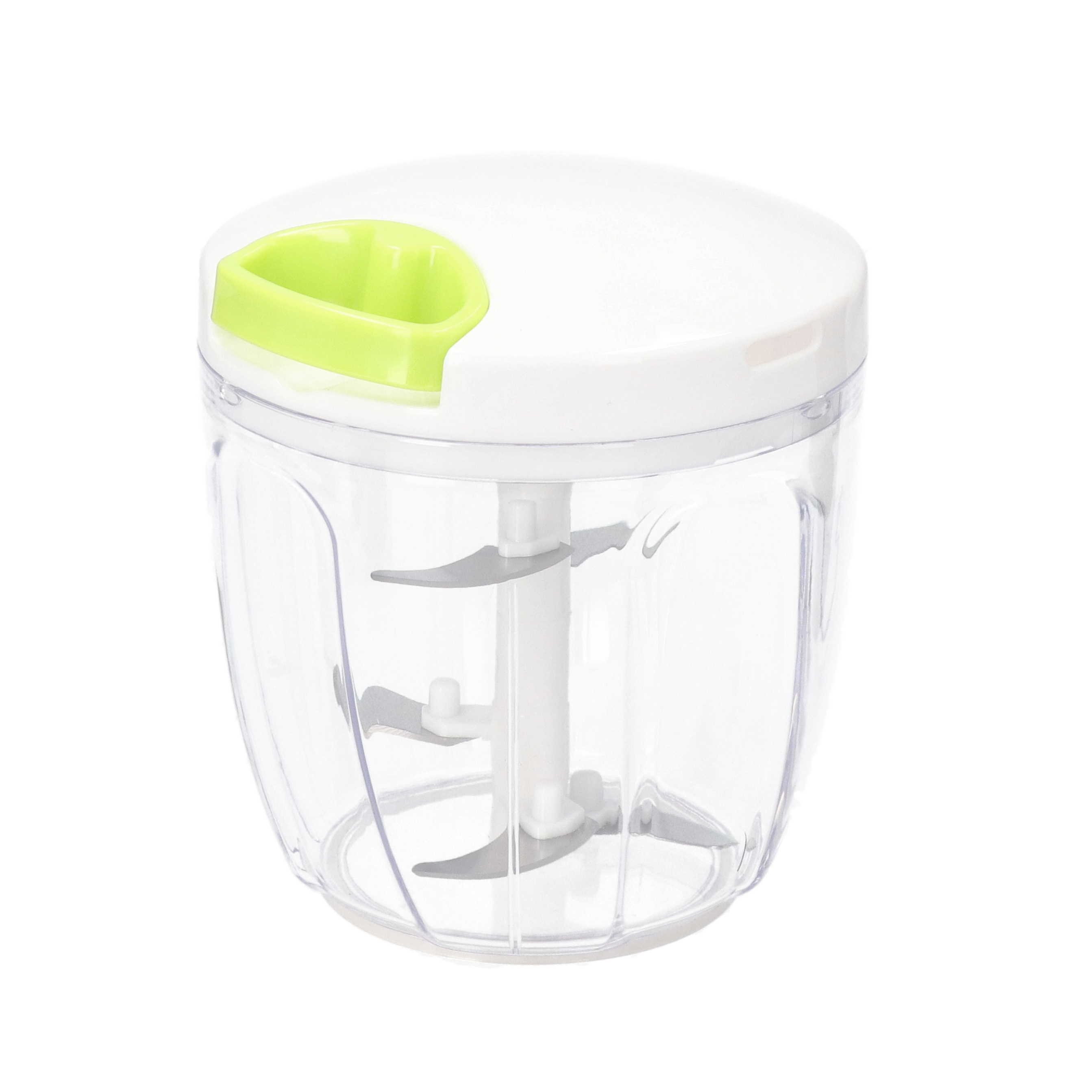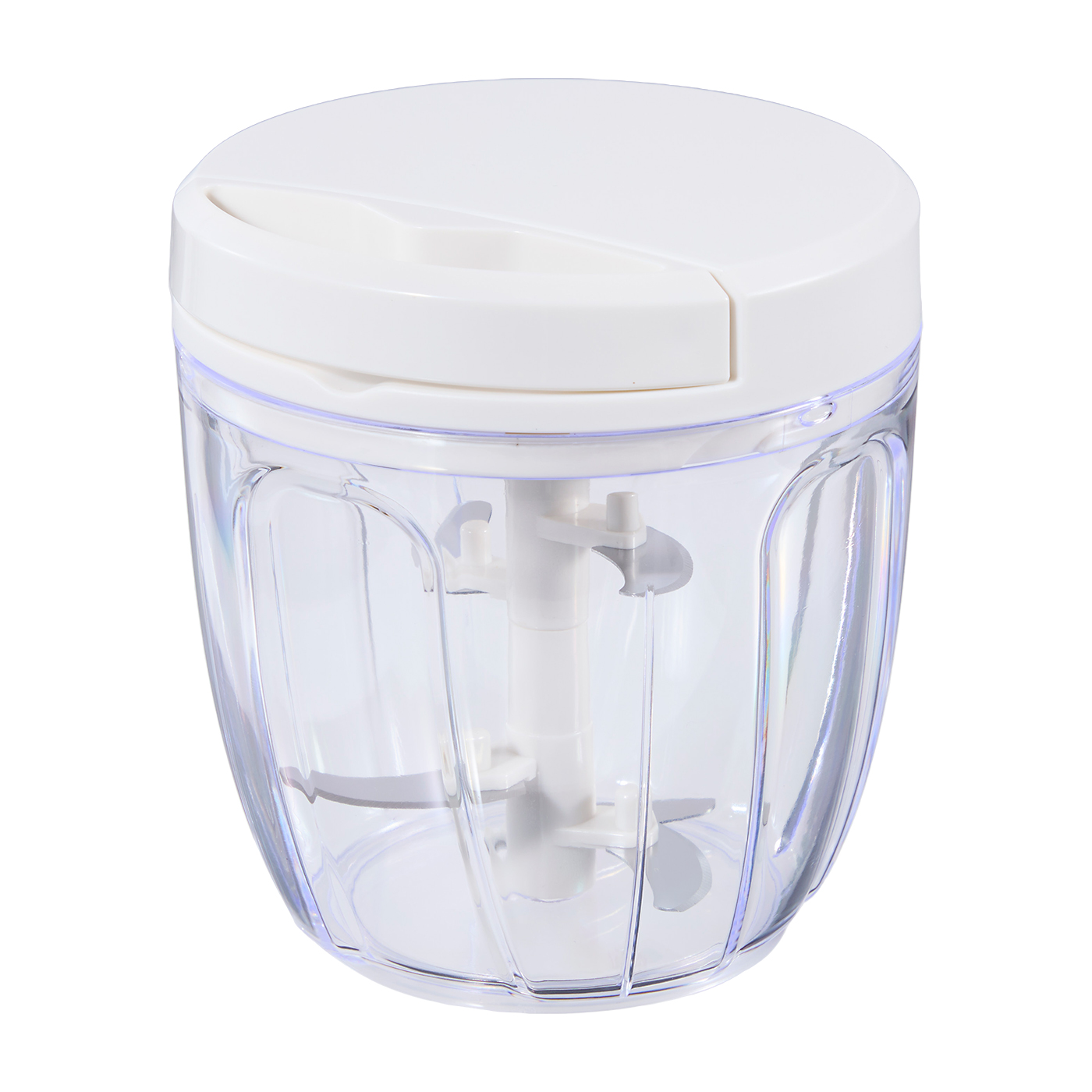 JOKINECOの「フードチョッパー」は、大量の食材を素早くみじん切りにしたい人におすすめ。900mLの大容量タイプで、一度にたくさんの食材を入れられます。なお、混ぜ器のアタッチメントがあり、みじん切りのほかに卵白の泡立て・食材のかき混ぜにも活用可能です。みじん切りの速さは検証したなかでもトップクラス。検証ではたまねぎは約20回・硬いにんじんでも約30回ほどひもを引くと、全体的に均一な粗みじんになりました。一片のニンニクも20回紐を引くと適度なみじん切りになったので、容器は大きめですが少量の野菜でも刻みやすいでしょう。ハンドルは2本指が余裕で入る大きさで、力を込めやすいつくり。底には円形の滑り止めがあり、ひもを引くときにも安定しやすいでしょう。フタは2cmほど回すとロックできるので、作業中に野菜が飛び出ることもありません。食洗機には対応していませんが、全パーツ丸洗い可能。フタには水抜き穴があるため、洗浄後は忘れずに排水しましょう。ブレードの取り外しにも対応し、清潔に保ちやすい点もポイントです。スピーディにみじん切りできるうえに後片づけもしやすく、調理の手間を軽減したいなら候補になるでしょう。