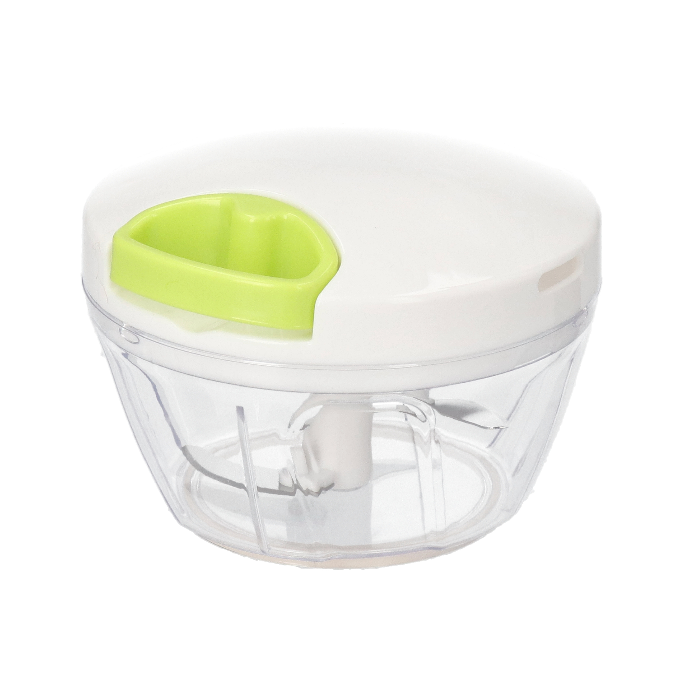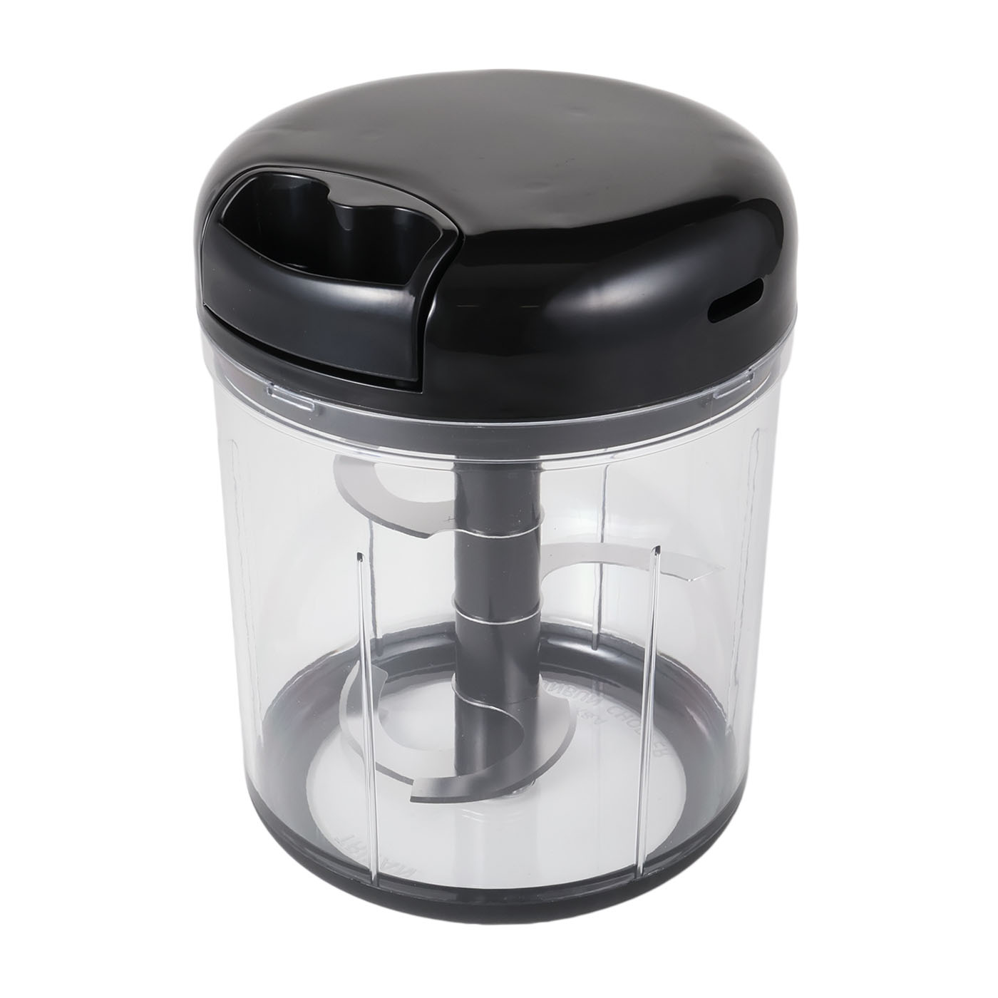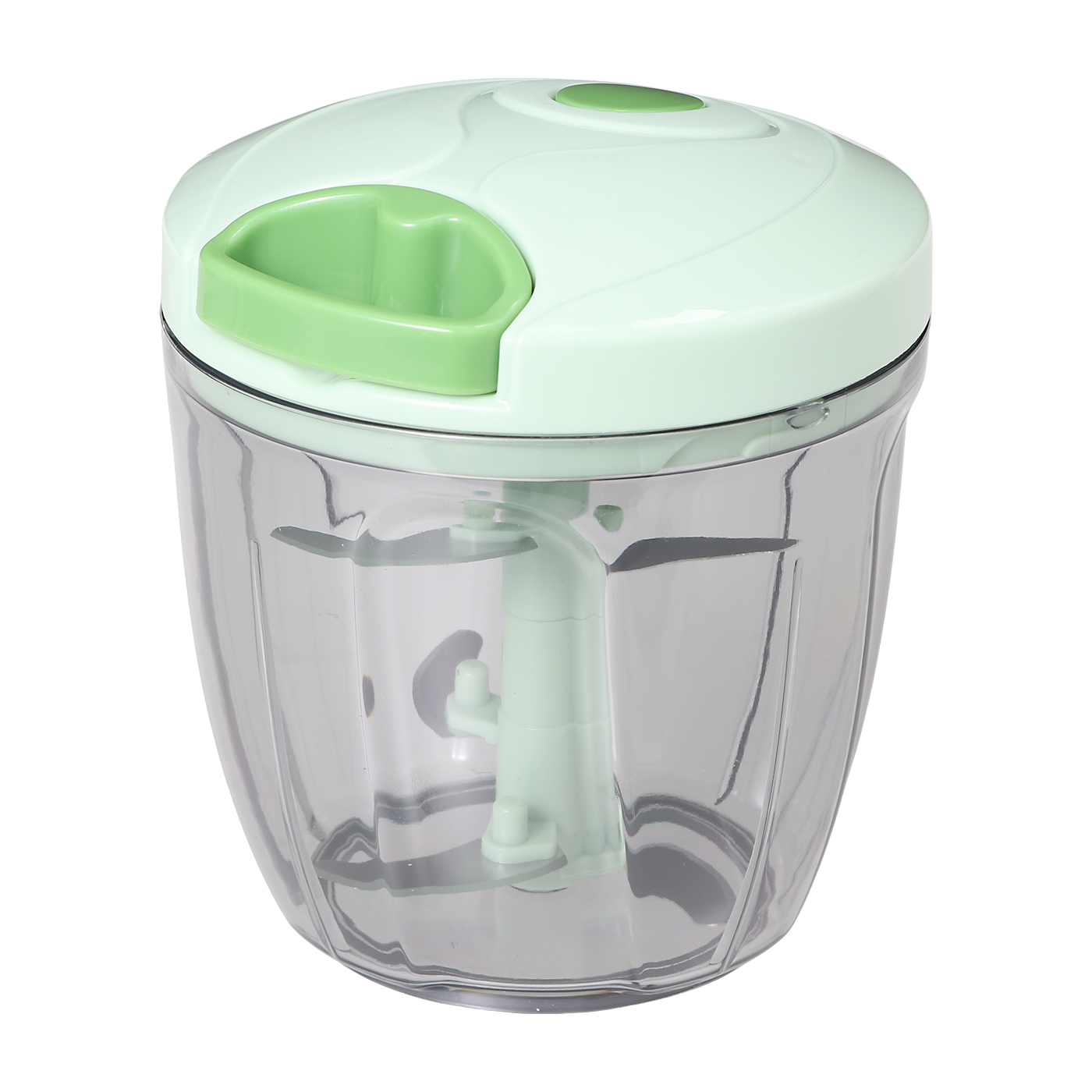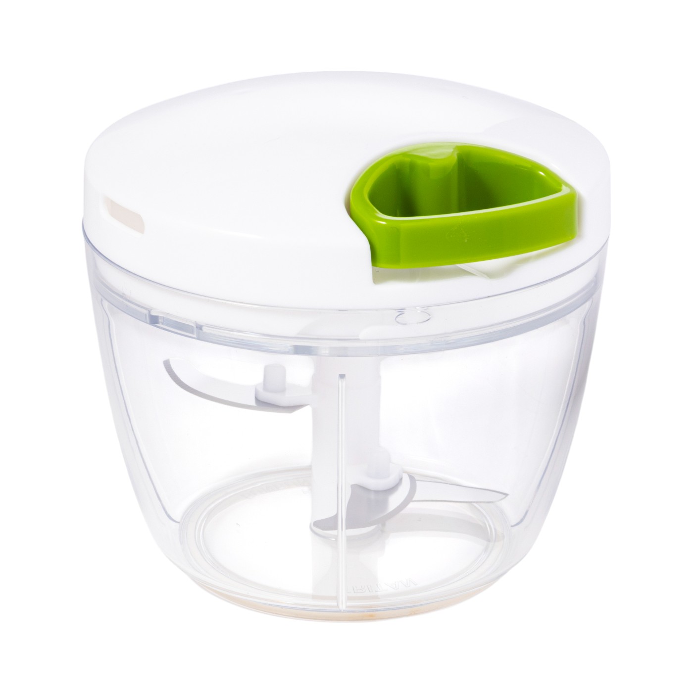 JOKINECOの「フードチョッパー」は、大量の食材を素早くみじん切りにしたい人におすすめ。900mLの大容量タイプで、一度にたくさんの食材を入れられます。なお、混ぜ器のアタッチメントがあり、みじん切りのほかに卵白の泡立て・食材のかき混ぜにも活用可能です。みじん切りの速さは検証したなかでもトップクラス。検証ではたまねぎは約20回・硬いにんじんでも約30回ほどひもを引くと、全体的に均一な粗みじんになりました。一片のニンニクも20回紐を引くと適度なみじん切りになったので、容器は大きめですが少量の野菜でも刻みやすいでしょう。ハンドルは2本指が余裕で入る大きさで、力を込めやすいつくり。底には円形の滑り止めがあり、ひもを引くときにも安定しやすいでしょう。フタは2cmほど回すとロックできるので、作業中に野菜が飛び出ることもありません。食洗機には対応していませんが、全パーツ丸洗い可能。フタには水抜き穴があるため、洗浄後は忘れずに排水しましょう。ブレードの取り外しにも対応し、清潔に保ちやすい点もポイントです。スピーディにみじん切りできるうえに後片づけもしやすく、調理の手間を軽減したいなら候補になるでしょう。