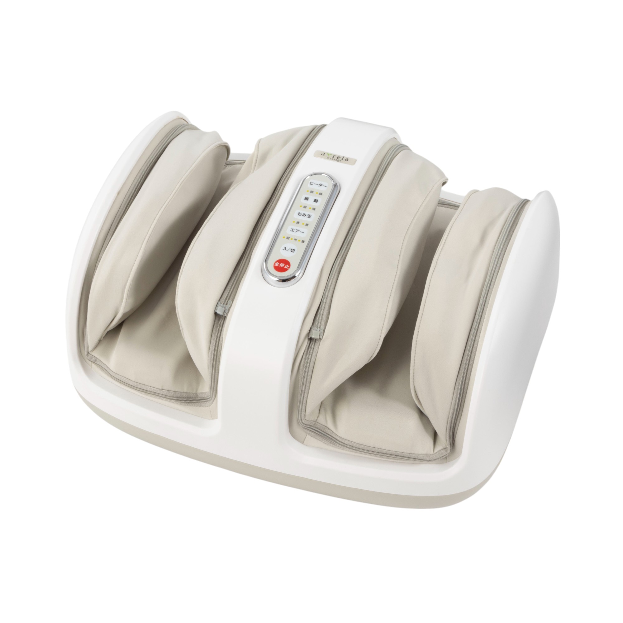アテックスの「ルルド プロもみ フットマッサージャー AX-HP117」は、足裏やふくらはぎを強めにほぐしたい人なら選択肢に入ります。今回検証したなかでは低価格で、サイズも小型です。モニターからは「人の手でぐっとマッサージを受けているような心地よさ」という声が挙がっています。足裏モードを使ったあとのモニターからは「足裏全体が解された」という声も挙がり、もみ玉の刺激の強さが好評でした。しかし、「皮膚が挟まれて痛い」という指摘もあったため、痛みに弱い人や刺激に敏感な人には不向きです。コンパクトなので同時に広範囲をマッサージするのは難しいものの、足裏・ふくらはぎは個別にしっかりマッサージ可能。もみ玉の刺激範囲は広めで、セルフマッサージしにくい小趾外転筋もほぐせます。ヒーター機能を搭載しているため、足先の冷えにもアプローチ可能でした。足をのせるだけで使用できる点は便利。エアーバッグの強さも2段階から調整でき、約15分の自動停止タイマーも搭載していました。稼動音の静かさは平均35.0dBと、使用していることを忘れそうな静かさ。カバーも取り外して洗えるので、手軽さやコンパクトさを重視するなら検討してもよいでしょう。