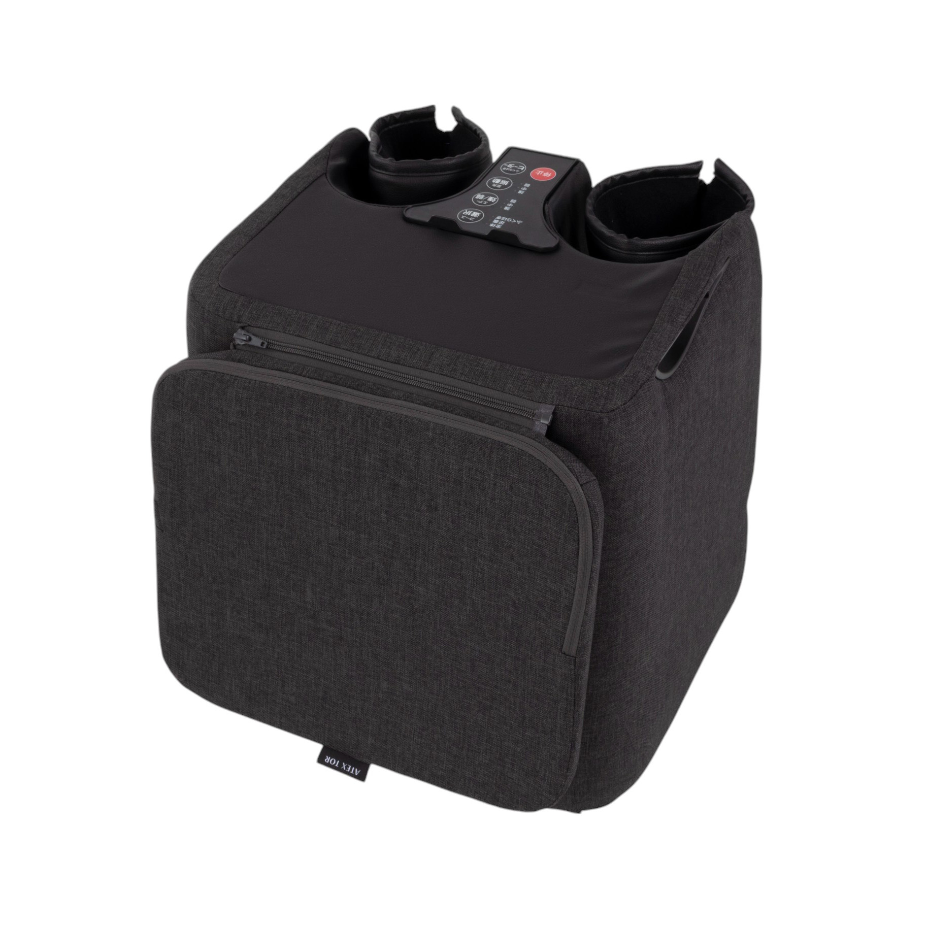 大東電機工業の「スライヴ フットマッサージャー MD-8708GY」は、足先からふくらはぎまでの広範囲を同時に刺激できるフットマッサージャー。足入れ式のなかでは手頃な価格で、コスパを重視する人なら候補に入ります。エアーバッグの数が多く全方位から加圧するため、心地よい刺激が得られる点はメリット。モニターからは「人に揉まれているような感覚で気持ちよかった」という声が挙がっています。しかし、足裏の突起が心地よい場所に当たらず、使用後も「スッキリ感はそこまでなかった」という意見も。強い圧で筋肉のコリをほぐしたい人には、物足りない力加減かもしれません。土踏まず・かかと・指の付け根に突起はあるものの、もみ玉やローラーはなく、もみほぐし性能はいまひとつ。振動機能・ヒーター機能もないため、血行が滞っている人や足先が冷えやすい人には不向きです。とはいえ、エアーバッグの強度は3段階から調整でき、本体のボタンにモード名の記載があるため、使いやすさは申し分ないでしょう。足入れ式な分、本体が大きめで場所をとりますが、足を入れるだけなので着脱の手間はほとんどかかりません。稼動音は平均50.7dBと大きく、使用時は周囲への配慮が必要。使用中の静かさやゴリゴリとした刺激は期待できませんが、価格の安さにこだわる人は検討してもよいでしょう。