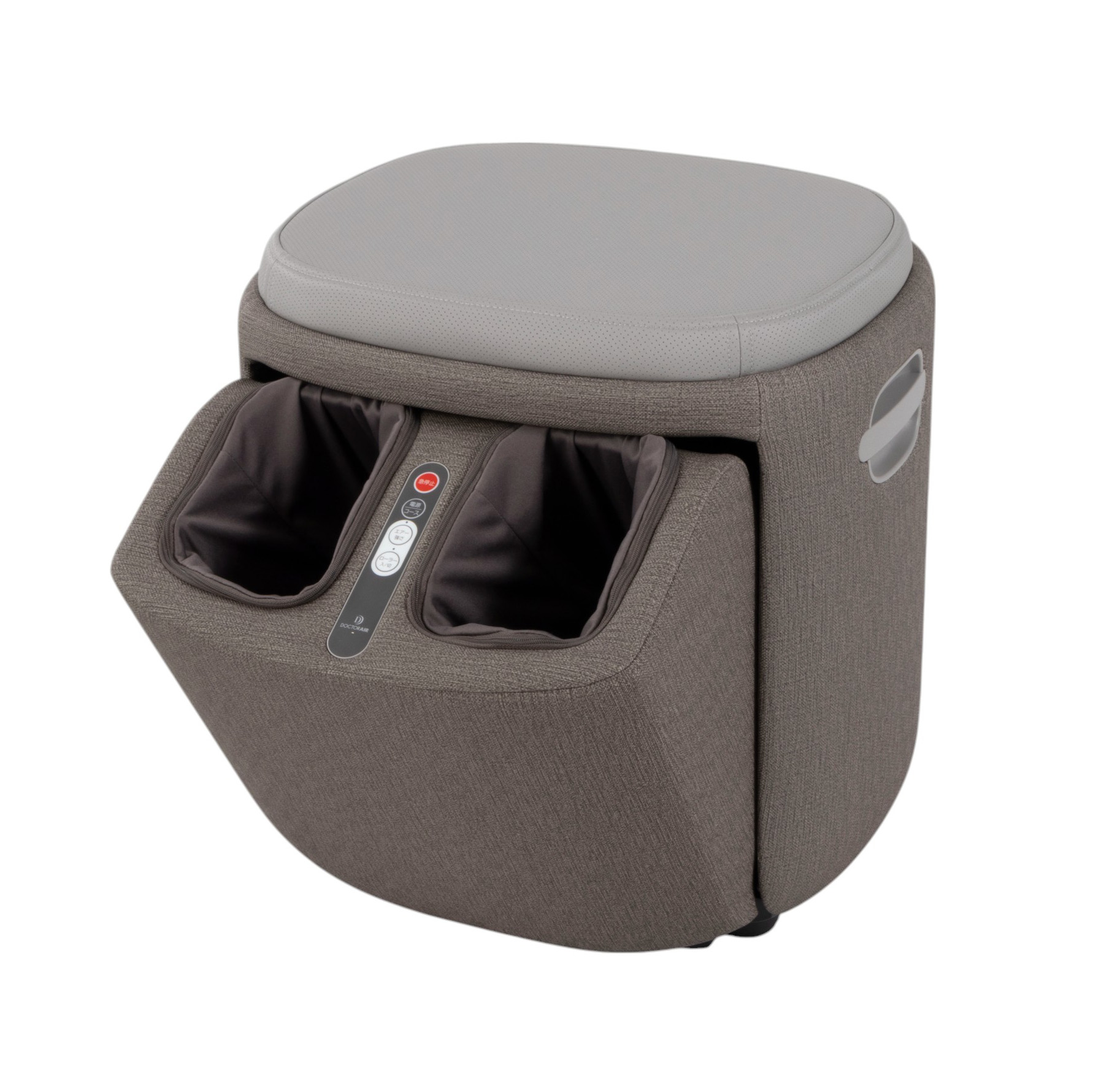 ドリームファクトリーの「ドクターエア ドクターエア 3Dフットマッサージャースツール MF-05」は、インテリアになじむものがほしい人におすすめ。足を挿入する部分を本体に収納すればスツールとしても使用でき、リビングに置いていても違和感なくなじむことがメリットです。エアーバッグによる締めつけやローラーの当たりが心地がよく、エアーバッグの強さも3段階から調整できます。実際に使ったモニターからは、「ぐりぐりされたいときも、やさしくほぐされたいときも対応できる」と好印象。ふくらはぎの刺激が強いと感じた人もいましたが、使用後は「とくに足首周りにスッキリ感があった」とプラスの声が挙がりました。指先からかかとまで全体的に突起・ローラーが当たり、足裏の外側にある小趾外転筋を含めて足裏全体をしっかりとほぐせます。振動機能・ヒーター機能はありませんが、足裏からふくらはぎまでの広い範囲を同時に刺激できますよ。約10分で自動停止するタイマー機能があり使いすぎを防止できますが、ボタンを押しても色が変わるのみでモード名の記載がないので、自分が今何のモードを使っているかが直感的にわかりにくいところは難点といえます。稼動音は平均44.9dBとやや大きめで、リラックスタイムに支障が出るほどではありませんが多少気になります。とはいえ、カバーも洗濯できて日常使いしやすいため、インテリア感覚で置きたい人は候補にしてください。