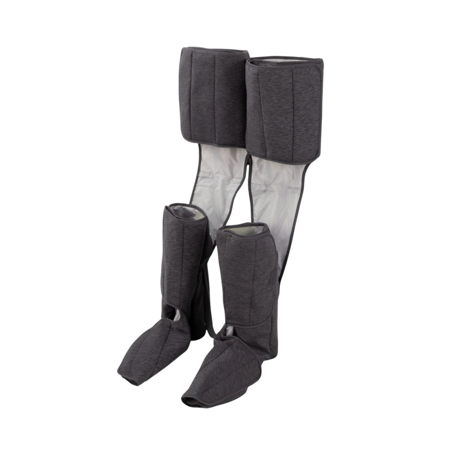 パナソニックの「Panasonic エアーマッサージャー はくだけキュッとリフレ EW-RA192-H」は、AIが足の太さを検知して圧を制御する機能が備わった商品。装着式で横になった状態で使用できます。使用していないときには3つ折りにして、コンパクトに片づけられることもメリット。エアーバッグの数が多く、足先から太ももまでを満遍なくギュッと包み込みます。モニターからは「圧が強いときと抜けるときのタイミングがよく心地よい」という声が挙がりました。しかし、振動・ヒーター機能もないうえ、もみ玉やローラーがなく刺激の種類が限られるので、ごりごりとしっかりほぐしたい人には不向き。また、人によってはエアーバッグの締め付けが強く感じたため、強めの刺激が苦手な人は避けた方がよいでしょう。ボタンにはモード名が記載されており、直感的に使用できることは魅力。装着式ですが両足にスポッとはめるだけで使えるため、簡単に着脱できますよ。強さは5段階、モードは4つからその日の気分に合わせて調節可能。約10分の自動停止タイマーもあるので使いすぎも防止できます。稼動音は平均43.0dBと静かではないものの、会話を妨げるほどではありません。リラックスできる体勢で酷使した足をマッサージしたい人は候補にしてもよいでしょう。