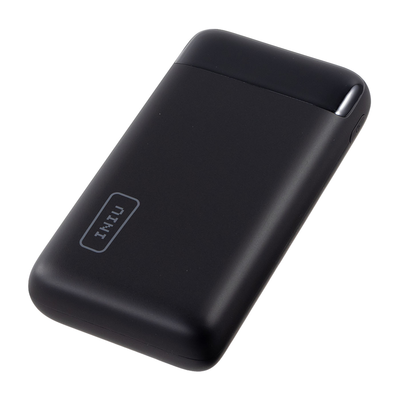 AmazonをはじめとするECサイトでスマホ向け充電器を販売する中国メーカー、INIU「モバイルバッテリー 20000mAh」。カラーはブラック・ホワイトの2色で、USB Type-A to Type-Cケーブルが付属しています。実容量は14,473mAhで表記の20,000mAhに対して変換ロス率は27.64%でした。今回検証したなかでも変換ロスは少なく、iPhone14であればフル充電が4回可能です。充電の速さの検証では、単ポート使用時は18.03Wを記録。スマホの急速充電に十分な出力でした。一方、2ポート同時使用時はType-Cポートから11.99W、Type-Aポートからは2.12Wと単ポート使用時よりも合計出力が少なくなりました。とくにType-Aポートはかなり出力が弱いので、2ポート同時に使用する場合はイヤホンのような小型な機器を充電しましょう。本体の厚さは25mmと薄型で面積も96.6cm2と小さく、カバンやポケットに仕舞いやすいサイズ。重さも約363gと軽量で片手でも持ちやすい商品です。出力ポートはType-Cが1つとType-Aポートが2つの合計3つで、3台の機器を同時に充電できます。バッテリー本体への充電はType-Cポートから最大18Wで可能です。バッテリー残量は数字で表示されるため充電状況を細かく把握できます。Type-Cポートの横にはLEDライトが搭載されており、電源ボタンを2回押すことでオン・オフの切り替えが可能です。
