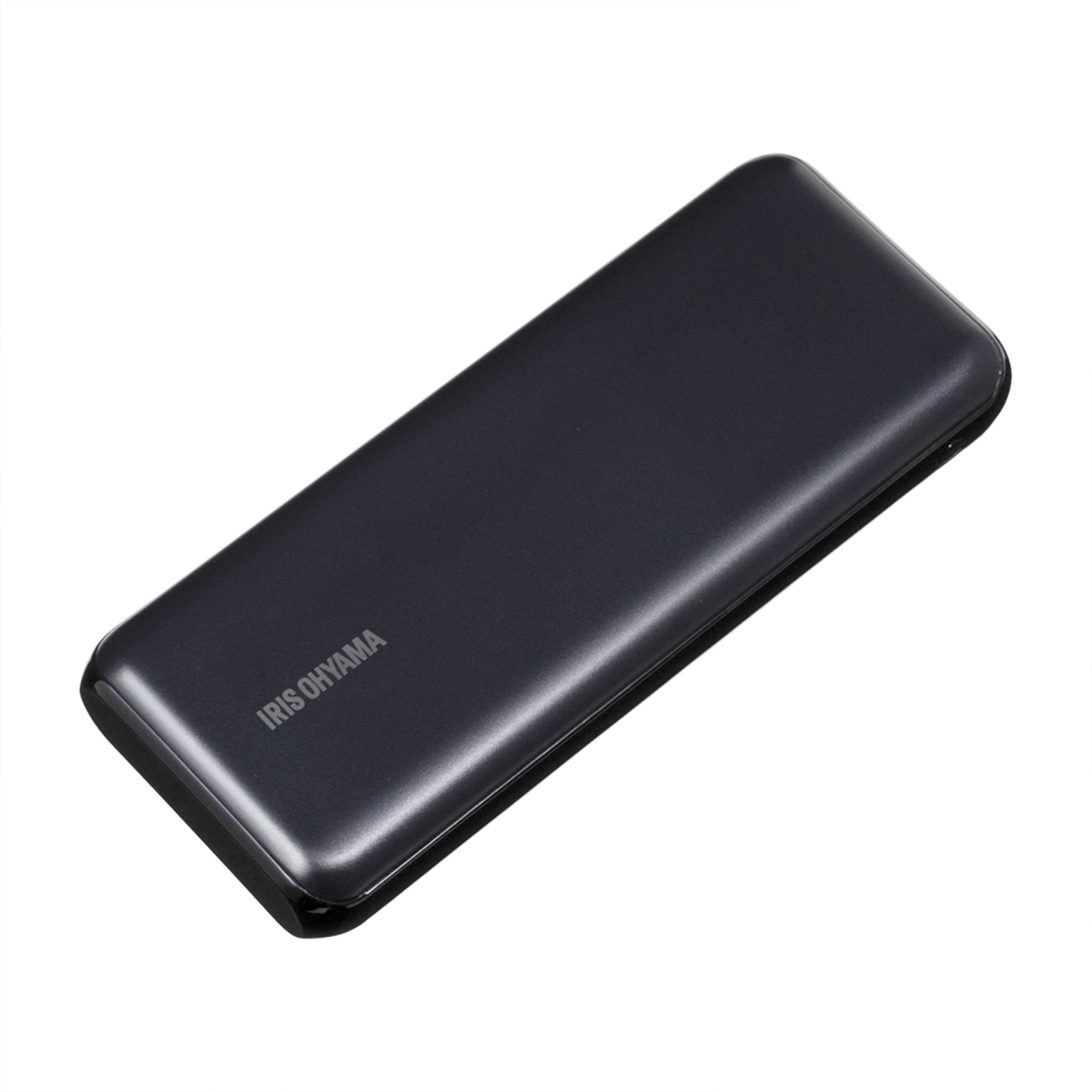 家電やインテリアを販売するメーカー、アイリスオーヤマの「モバイルバッテリー 黒」。USB Type-A to microUSBケーブルが付属しています。実容量は13,728mAhで、表記の20,000mAhに対して変換ロス率は31.36%でした。変換ロスは少なくiPhone14を充電する場合、4回フル充電が可能です。充電の速さの検証では、Type-Cポートから16.62W出力とスマホを急速充電するのに十分な出力でした。しかし、2ポート同時使用時はType-Cポートは11.5W、Type-Aポートは4.02Wとどちらも出力が落ちてしまいました。複数接続した場合の充電スピードは高速とはいえません。持ち運びやすさは、面積が97.65cm2で厚さは23mmとコンパクトでカバンやポーチに仕舞いやすい大きさです。重量も約360gと軽く持ち運びやすいモバイルバッテリーといえるでしょう。出力ポートはType-Cが1つとType-Aが2つの合計3つあるので、3台の機器を同時に充電できます。バッテリー本体への充電はType-Cポート・microUSBポートのどちらからでも可能です。変換ロスが小さく、持ち運びにもおすすめな商品です。