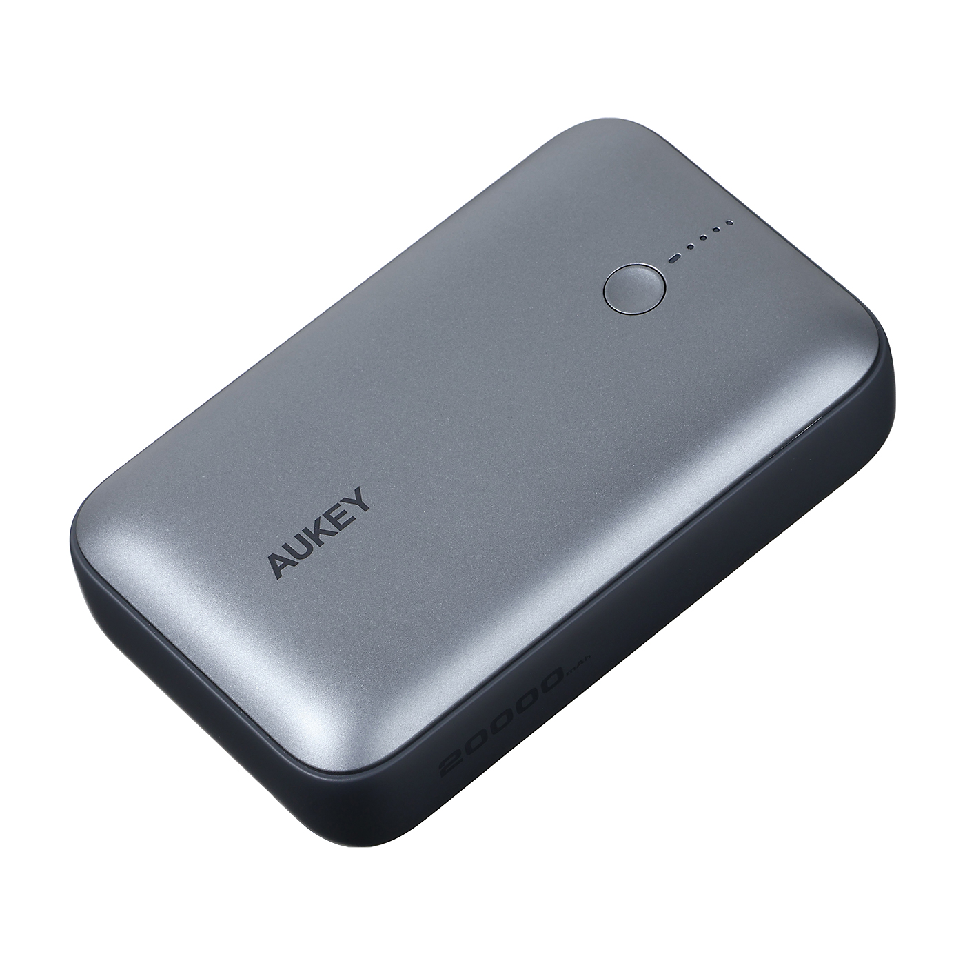 充電関連の機器を扱うメーカー、Aukey Technologyの「AUKEY Spark Mini 20000 PB-Y57-GY」。持ち運びやすいものを求めている人におすすめです。変換ロスが少なく、充電に使える容量が大きいのも魅力。表記の20,000mAhに対して実容量は13,804mAhを記録し、ロス率は30.98%でした。iPhone14なら4回フル充電できる計算です。充電の速さの検証では、Type-Cポートの出力は18.60Wを記録しました。スマホの急速充電には十分な出力といえます。一方で、2ポートで同時充電するときの速度はいまひとつ。Type-Cポートは3.27W・Type-Aポートは12.08Wと出力は低く、単ポートより充電速度が落ちます。持ち運びやすさは重量が約315g・面積は78.99cm2と、軽量かつコンパクトでポケットに入れやすいサイズです。厚さも26.3mmと大きすぎず、スマホと重ねて持ってもかさばりにくいでしょう。入力端子にはType-Cポートを搭載し、最大18Wで本体に充電できます。バッテリー残量はインジケーターで表示され、おおまかに充電タイミングを把握可能。本体と接続デバイスを同時に充電できる、パススルー機能も搭載しています。マグネットでスマホ背面につけられるMagSafeには非対応ですが、使い勝手は悪くなく、携帯性重視なら候補になるでしょう。