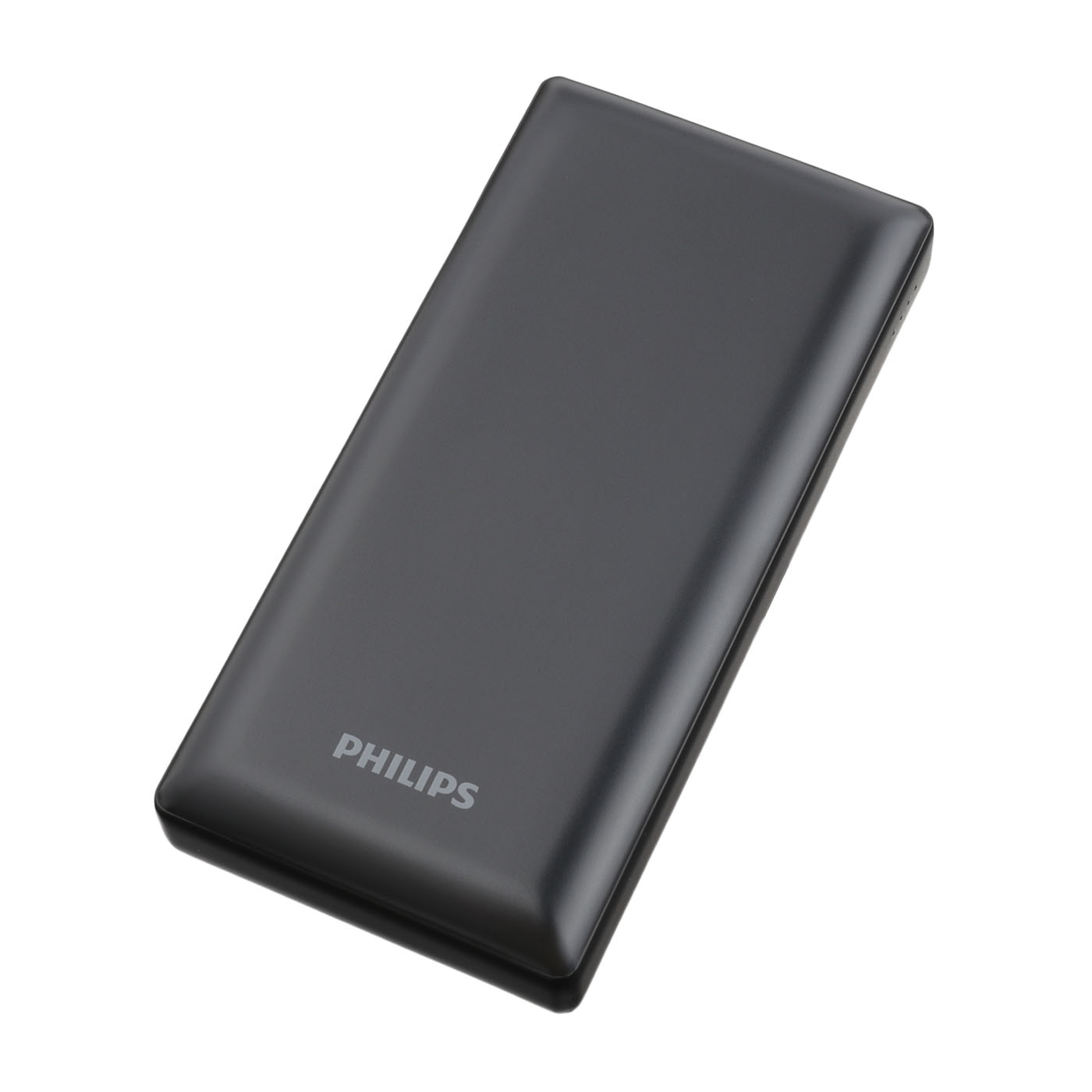 ヘルスケア製品・医療関連機器を販売するオランダのメーカー、PHILIPSの「大容量モバイルバッテリー」。カラーはブラックのみで、USB Type-A to Type-Cケーブルが付属しています。実容量は13,701mAhで、表記の20,000mAhに対して変換ロス率は31.49%でした。変換ロスは少なく十分な実容量があり、iPhone14なら4回フル充電が可能です。充電の速さの検証では、単ポート使用時は18.36W出力を記録。スマホやタブレットの急速充電が可能なほど高出力です。一方、2ポート同時使用時はType-Cポートから10.44W、Type-Aポートからは4.03Wと合計出力は単ポート使用時の出力よりも落ちてしまいました。2台同時に充電すると急速充電ができなくなるので注意が必要です。本体の厚さは28mmとやや厚みがありますが、面積は96.60cm2と小さくカバンやポーチに仕舞いやすいサイズ。重さも約365gと軽量で持ち運びの際に負担を感じることはほとんどないでしょう。出力ポートはType-Aが2つとType-Cが1つで、最大3台の機器を同時に充電可能です。バッテリー本体への充電はType-Cポート・microUSBポートのどちらからでもできます。