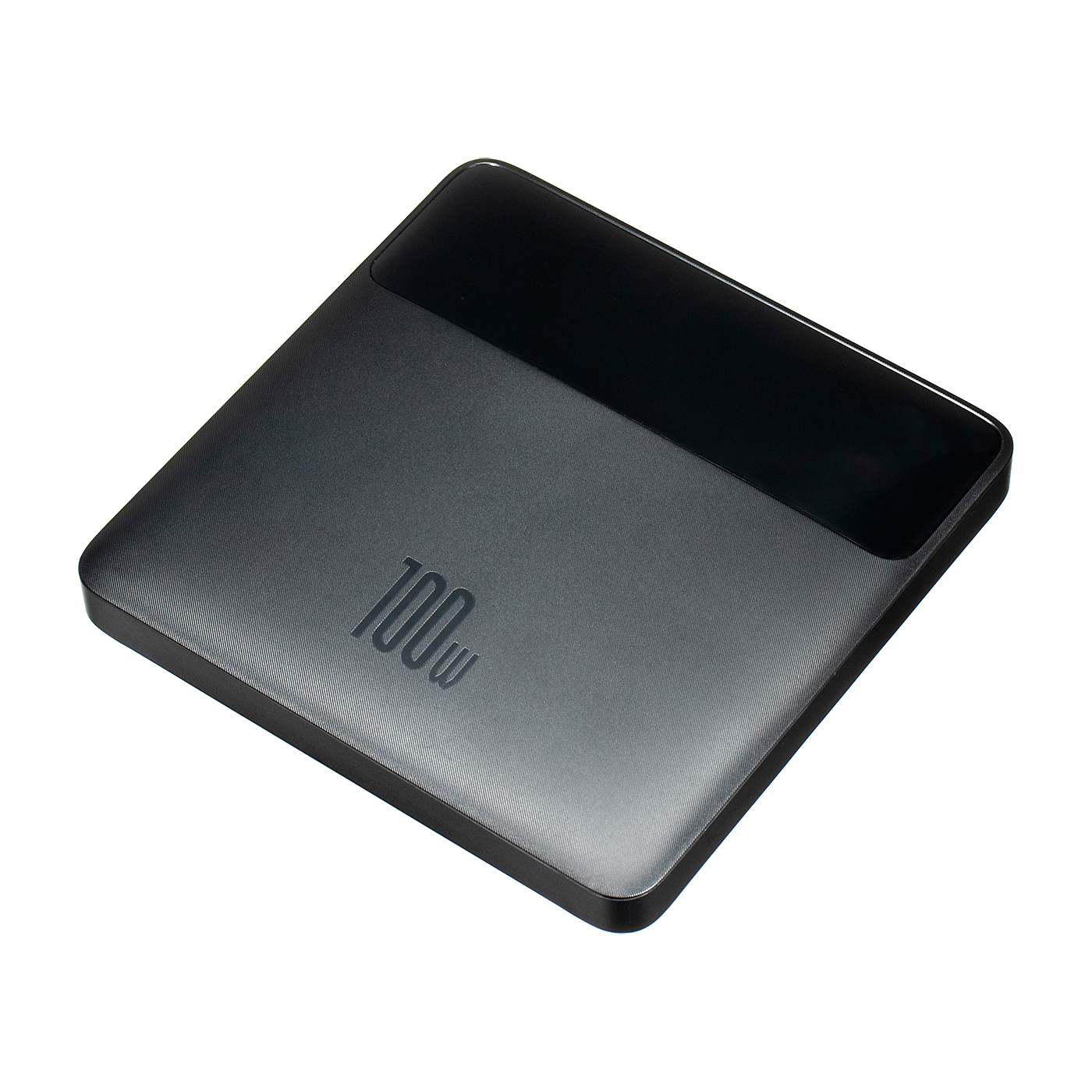 Amazonにてスマホ向きの充電器を販売するメーカー、Baseusの「Baseus BladeHD」。表面上部にディスプレイを搭載しており、薄型で正方形の本体が特徴的です。変換ロスの少なさの検証では、実容量は13,357mAhで表記の20,000mAhに対して変換ロスは33.22%でした。変換ロスは少なくバッテリー0%のiPhone14を充電する場合、約4回フル充電ができます。充電の速さの検証では、単ポート使用時にType-Cポートから92.95W出力を記録。超高出力でスマホだけでなく、MacBook Proのような高性能ノートPCの急速充電が可能です。2ポート同時使用時は2つのType-Cポートからそれぞれ53.34Wと28.54Wを出力。ノートPCとタブレットを同時に急速充電できるほど高出力です。天面の面積は179.56cm2と広いものの、厚さはわずか19.8mm。薄型の正方形で、ノートPCと一緒にPCケースに仕舞いたい人におすすめです。出力ポートはType-CとType-Aを2つずつの、合計4ポートを搭載。最大で4台の機器を同時に充電できます。バッテリー本体への充電はType-Cポートから最大60W入力に対応。本体上部のモニターでは、残量や充電状況を数字で確認できます。バッテリー本体を充電しながら機器を充電できるパススルー機能も搭載。コンセントが少ない旅行先や、充電器を1つしか持っていないときに活躍するでしょう。