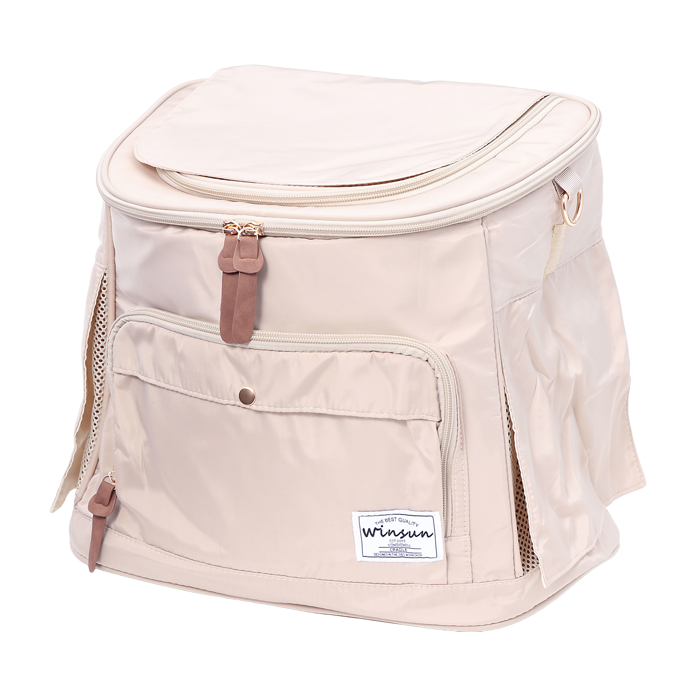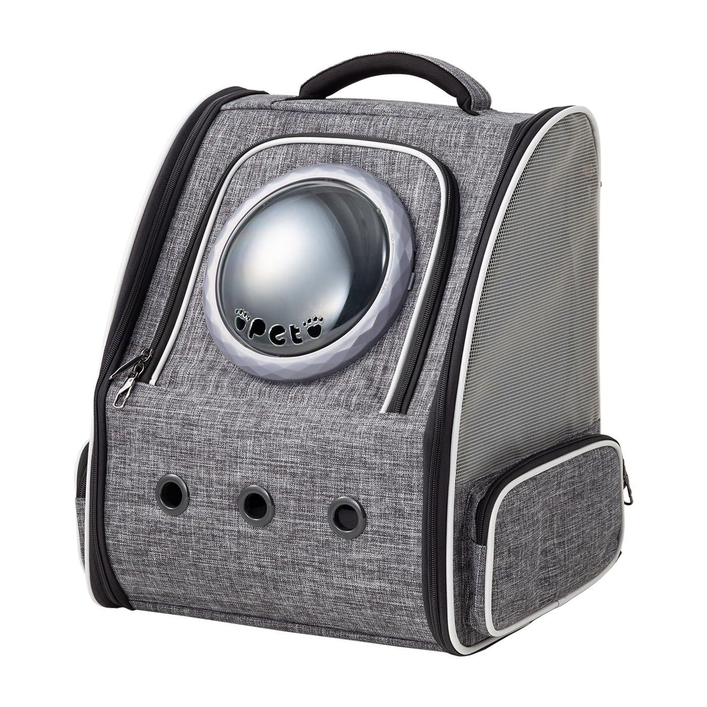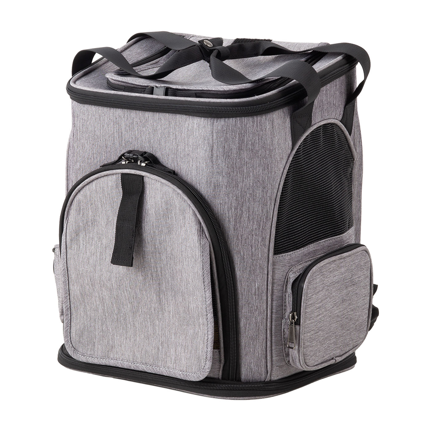 PLEISEの「ペットキャリーバック」は、お出かけに慣れていない猫を飼っている人におすすめです。上部が100度以上開き、上から猫の出し入れができます。猫が逃げにくいので、初心者にとって使いやすいでしょう。猫が伏せた状態で隠れられるスペースを確保できるのもうれしい点です。前面の窓はカバーで隠せて、側面の窓も上部分についています。猫が屈んだらまったく外から見えなくなるので、猫がリラックスしやすいでしょう。通気口が左右両面・前面・上面にあり、熱もこもりにくいといえます。下敷きカバーは外せないものの、お手入れ時は下敷きを取り外し可能です。ただし、持ち運びやすさがいま一歩。腰・背中ともにクッション性が物足りず、フレームの硬さやずっしりとした負担が気になりました。モニターからは「下部のフレームが腰にあたり痛かった」との声も。長さを17~31cmに調節できる飛び出し防止リードがあり、猫の脱走を防げます。ファスナーの両サイドはバックルで固定でき、中からも開けにくいでしょう。その一方、表面中間にフレームがなく、外部からの衝撃に弱い点はネック。人やものにあたると変形して、中のスペースを圧迫する可能性があります。持ち運びやすさや丈夫さには懸念が残るものの、猫の快適性や使いやすさには期待。猫の出し入れに苦戦しそうな人は検討してもよいでしょう。