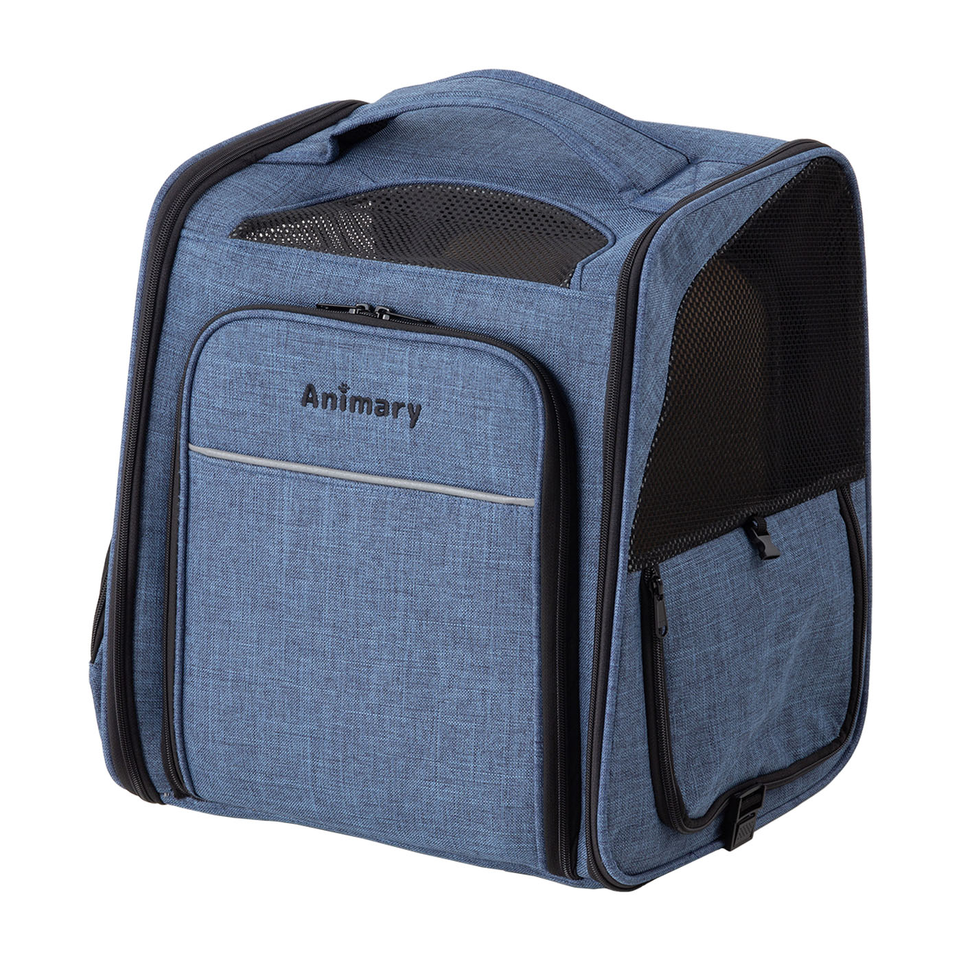 pidanの「ペット用折りたたみ式ハウス型トラベルリュック」は、猫のことを第一に考えたいすべての飼い主さんにおすすめです。全面的にカバーがついており、猫の視界を遮れます。猫がリラックスしやすいスペースを確保できるでしょう。猫が隠れられるスペースは幅39×高さ15cmと広く、カバーを開けた状態でも猫が伏せれば外から見えにくくなります。左右両面・前面・上部にそれぞれ通気口があり、通気性にもしっかり配慮。座面も安定しており、10kgの錘を入れても下に膨らみませんでした。腰への負担が少なく、楽に持ち運びできるのもうれしい点です。背負ったときに安定感があり、背中や腰へのフィット感に長けていました。使用したモニターからは「リュック下部が腰にあたる感じがなく、とても快適」と好評。ソフトタイプなので分解でき、下敷きも取り外せるので、お手入れに手間はかかりません。猫を上から入れられないのは惜しい点ですが、拡張機能つきでより広い空間を用意できます。中間部分には2〜3cmほどの硬いフィルムが入っており、外部から衝撃が加わっても型崩れにしにくいのもメリット。人やものにあたっても、猫のスペースを圧迫しません。ファスナーは一番上もしくは下に位置を合わせられ、猫が触りにくい設計です。その一方、飛び出し防止リードがないので脱走に注意しましょう。猫が脱走するリスクはあるものの、猫の快適さと飼い主の使いやすさを両立しています。耐荷重は10kgと大きめで、幅広い猫に使いやすい印象です。猫のことも飼い主のことも考えられている商品といえるでしょう。