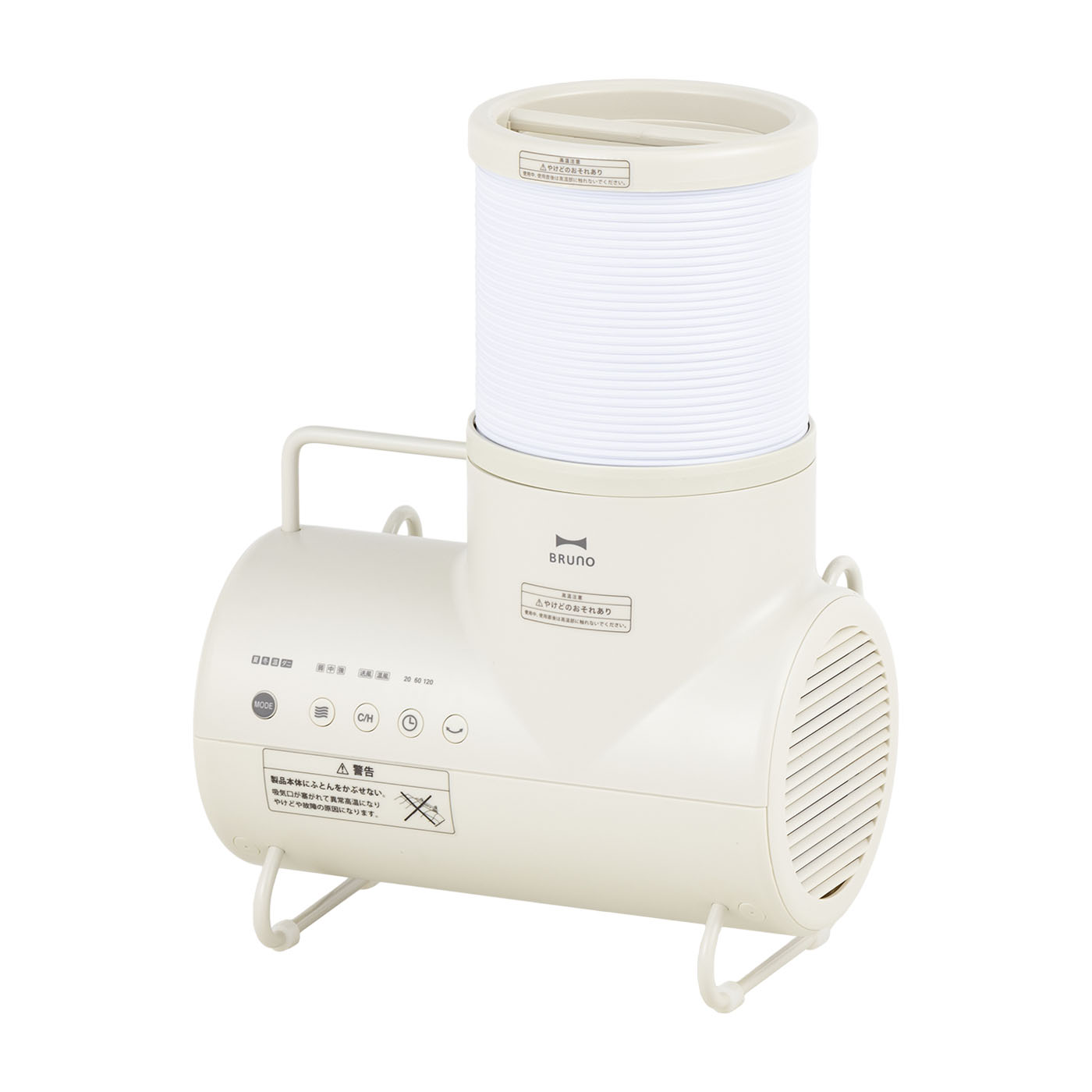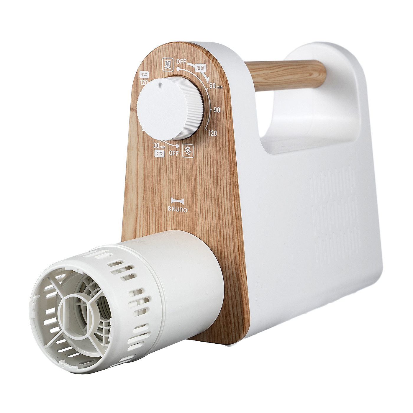 BRUNOの「BRUNO マルチふとんドライヤー BOE047」は、収納しやすいものがほしい人におすすめです。一体型収納タイプなので、靴用アタッチメント以外は、ノズルもコードも本体に収まります。布団の温めがメインで使用頻度が高い人には使いやすいでしょう。本体は115mmと薄く、ベッドサイドなどに収納しやすいのもうれしいポイント。取っ手があるうえ約1.4kgと軽量で、持ち運びもスムーズです。布団乾燥コースは「夏」と「冬」の2つがあり、ダイヤルを回してダニ対策や靴乾燥コースも設定できます。あたためコースは60分と時間が長いものの、すべての場所で40℃以上を記録し、寒い冬もお風呂のような心地よさを作れそうです。ダイヤルを回すことで、好みの稼動時間や温度に調整できますよ。ダニ対策コースでは、足以外はダニ対策に有効な条件を満たす結果に。ホースの向きを変えて使えば、ダニの発生を抑制できそうです。また、水200mLを含ませたシーツを乾燥させたところ、足元がしっとりしていましたが、おおむね広範囲を乾燥できました。一定のカビ対策は期待できるでしょう。一方で、稼動音は56.8dBとやや大きく、静かさはいまひとつです。ドアを隔てていても、時間帯によっては音が気になる可能性があります。ホースが0.43mとやや短いのは惜しい点ですが、使い勝手は悪くありません。しっかりと温めができるので、すっきり収納できるものがほしい人には魅力的な布団乾燥機です。
