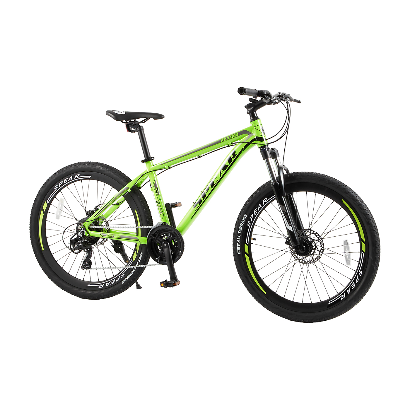 アニマトの「SPM-2621」は、インパクトのある見た目のホイールが特徴的なマウンテンバイクです。実測で15.46kgと重いため、走りの軽快さの評価は伸び悩む結果に。26インチと小さめのタイヤなので小回りが利く感覚はあるものの、加速時にはタイヤまわりの重さを感じることがありました。サスペンションは極端に動きが悪いことはありませんでしたが、アーチ部分が溶接でつくられておりややたわみやすいため、丈夫さの検証は高評価とはならず。また、未舗装路が走れない点には注意しましょう。ブレーキは機械式ディスクブレーキを備えています。検証では舗装路での通常走行では問題レベルの無いレベルのブレーキ力が発揮されました。7段変速ギアを備えており、街乗りでは十分な性能発揮するでしょう。変速レバーはトリガーシフトを搭載しているため、グリップの握りやすさも魅力です。スタンドやディレイラーガードを備えており、日常使いのしやすさも好印象。また、スポーツ車系規格のパーツが多く装備されており、カスタムしやすい点もメリットです。