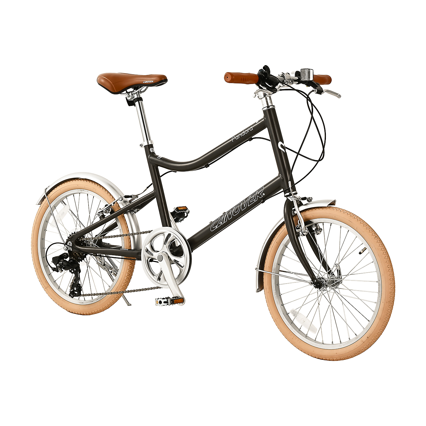 オオトモの「CANOVER Pandor ミニベロ CA-MV001」は、軽量なアルミフレームが特徴のミニベロ。街に溶け込む落ち着いたデザインも魅力です。車体重量が実測で12.62kgと特別軽いわけではなく、走りの軽快さはもう一歩の結果に。ホイールベースがやや長いことが特徴で、乗りやすさの検証では高い評価を獲得しました。泥よけやスタンドを標準装備しており、日常使いしやすい装備がそろっていることはメリットです。特に泥よけは後づけする場合に適合するものを見つけることが難しいケースが多いため、うれしいポイントですね。また、パーツ類はほとんどスポーツ車系の規格を使用しており、カスタムのしやすさにおいても高評価を獲得しました。カスタムも視野に入れているけれど、日常使いのしやすさを犠牲にしたくない人におすすめの商品です。