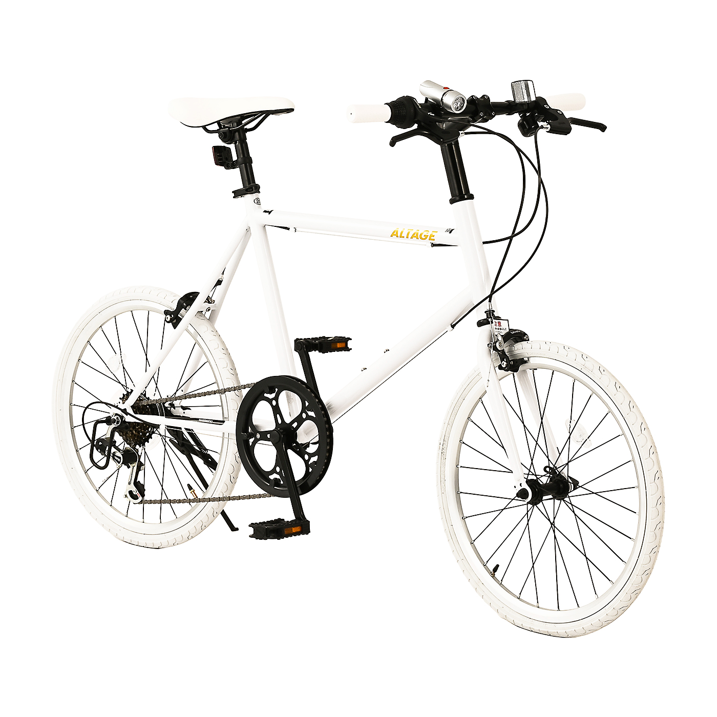 オオトモの「ALTAGE ミニベロ AMV-001」は豊富なカラーバリエーションが特徴のミニベロです。タイヤサイズが20x1-1/8とやや細めであることやホイールベースが短めであることから、走行中にフラつきを感じやすい傾向があり、乗りやすさは満足とはいきませんでした。車体重量についても実測で12.92kgと標準的で、走りの軽快さの評価ももう一歩といったところです。日常使いのしやすさも高評価とはなりませんでしたが、スタンドと電池式のライトを備えており、追加購入の必要がない点はメリット。一方で使っているパーツはスポーツ車系の規格ではないものが多く、カスタムのしやすさの評価は伸び悩む結果となりました。豊富なカラーバリエーションから、好みの一台を見つけたい人にはおすすめです。