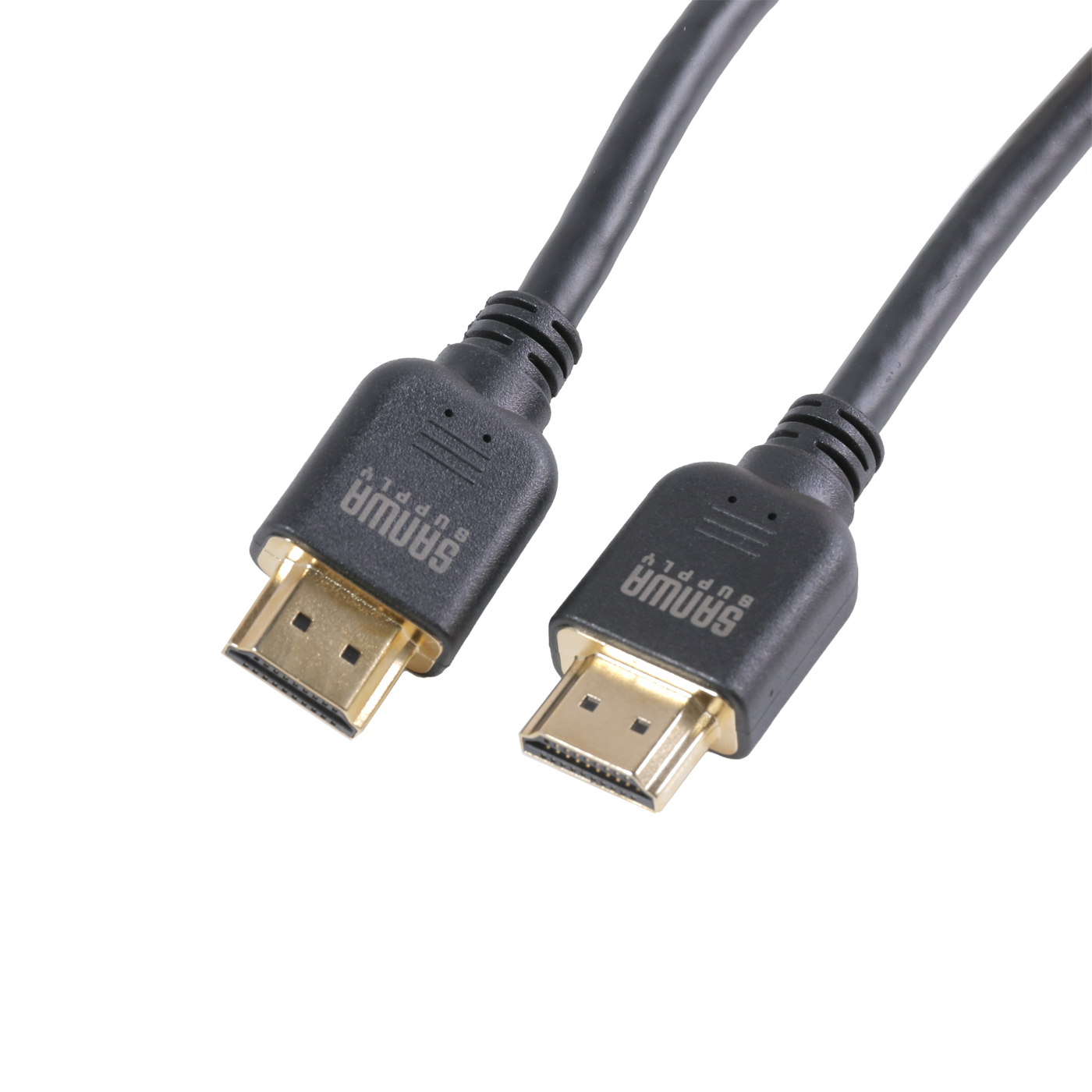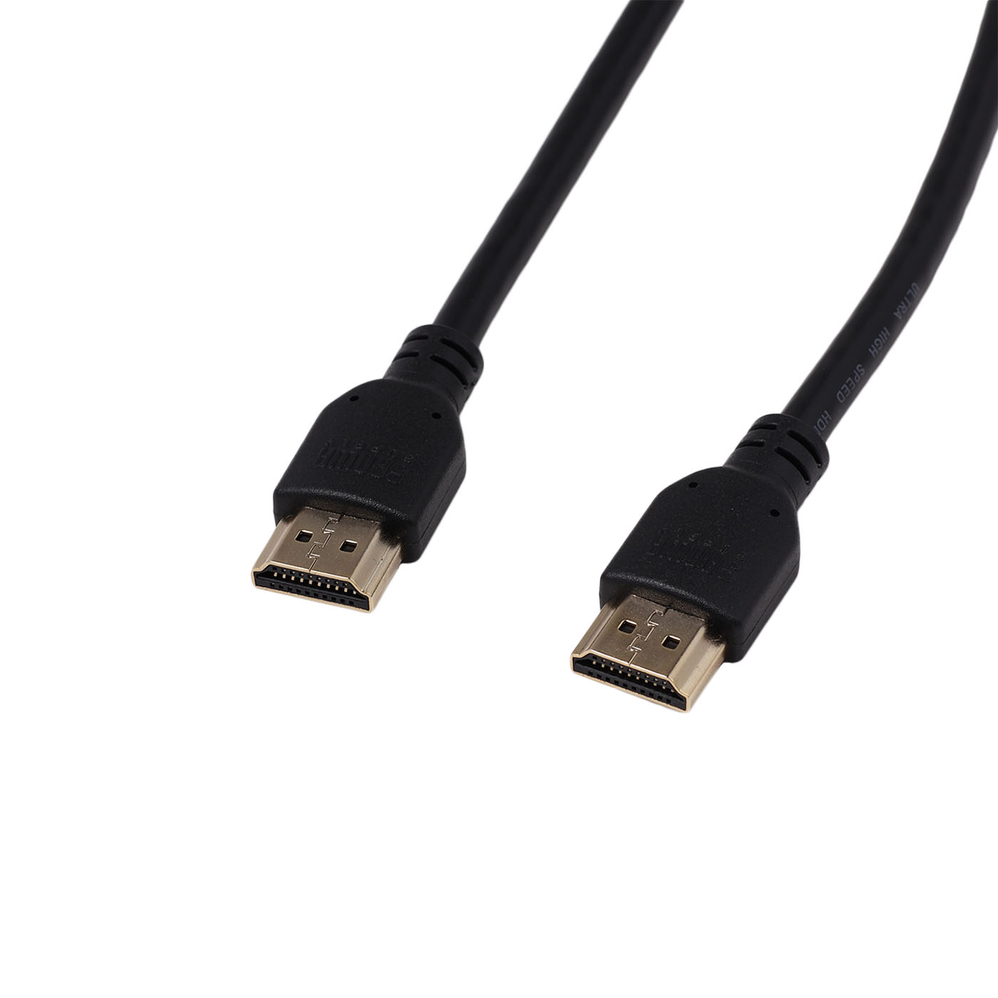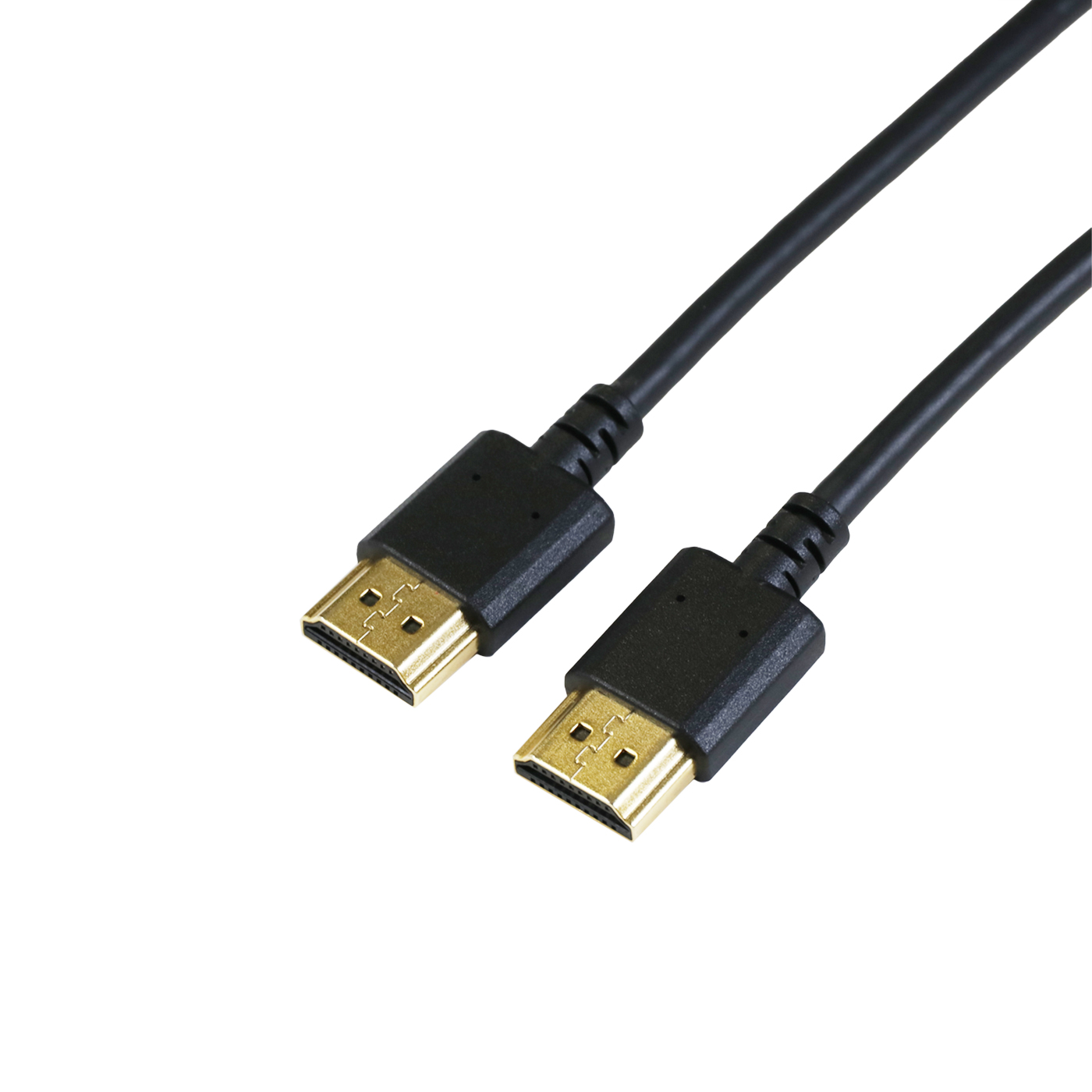 AV周辺機器の企画・製造・販売をしているメーカー、ホーリックの「HA15-689BB」。長さ1.5mのHDMIケーブルで、3重シールド構造によりノイズを低減できると謳っています。プレミアムハイスピードの規格に対応しており、Ultra HD Blu-rayの4K・HDRの信号を伝送できます。また、ARCに対応しているため、HDMIケーブル1本でサウンドバーとの接続が可能。VRRやALLMには対応していないので、PS5やXbox Series Xなどで最先端のなめらかな映像を楽しみたい人には不向きです。ケーブルは比較的細めで柔らかいので、テレビ台の裏やデスクトップPCの周辺など狭い場所でも取り回しやすいでしょう。また、300回折り曲げても断線することはありませんでした。