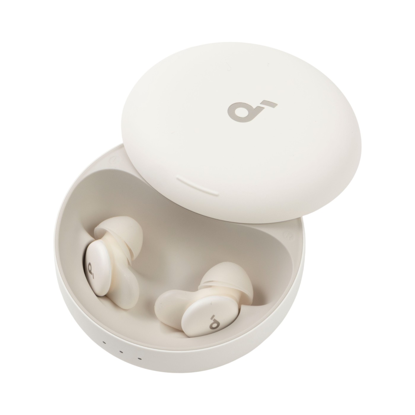 Ankerの「Soundcore Sleep A20」は、睡眠専用に設計されたカナル型の完全ワイヤレスイヤホン。同社の「Soundcore Sleep A10」の後継機として登場し、Amazonや楽天などのECサイトでも売れ筋ランキングに入る人気モデルです。本体は小型かつ軽量で、装着感・外れにくさともに優秀。「小さくて軽い」「耳あたりがやさしく、圧迫感がない」といった声が多く、長時間の装着でもストレスなく使えるでしょう。一方、遮音性は低くはないものの、カナル型イヤホンのなかでは控えめな数値です。騒音対策が主目的の場合、他の選択肢を検討する余地もあるでしょう。音質は高水準で、クリアかつハキハキとした音が特長。こもり感がなく、声の輪郭も明瞭に再現されます。解像度や音の細やかさにも優れており、リスニング用途としても満足度の高い仕上がりです。特に声の再現性に優れ、男性の低音から女性の高音まで自然に聴き取れ、声色の違いもはっきりと感じられます。また、手動タイマーに加え、入眠を検知して自動で音を止める高度なタイマー機能を搭載。アラームや紛失防止機能も備えており、睡眠サポート機能も充実しています。装着感・音質・機能性の3拍子がそろった1台。音声コンテンツや自然音、音楽など、幅広く楽しみたい人におすすめできる寝ホンです。