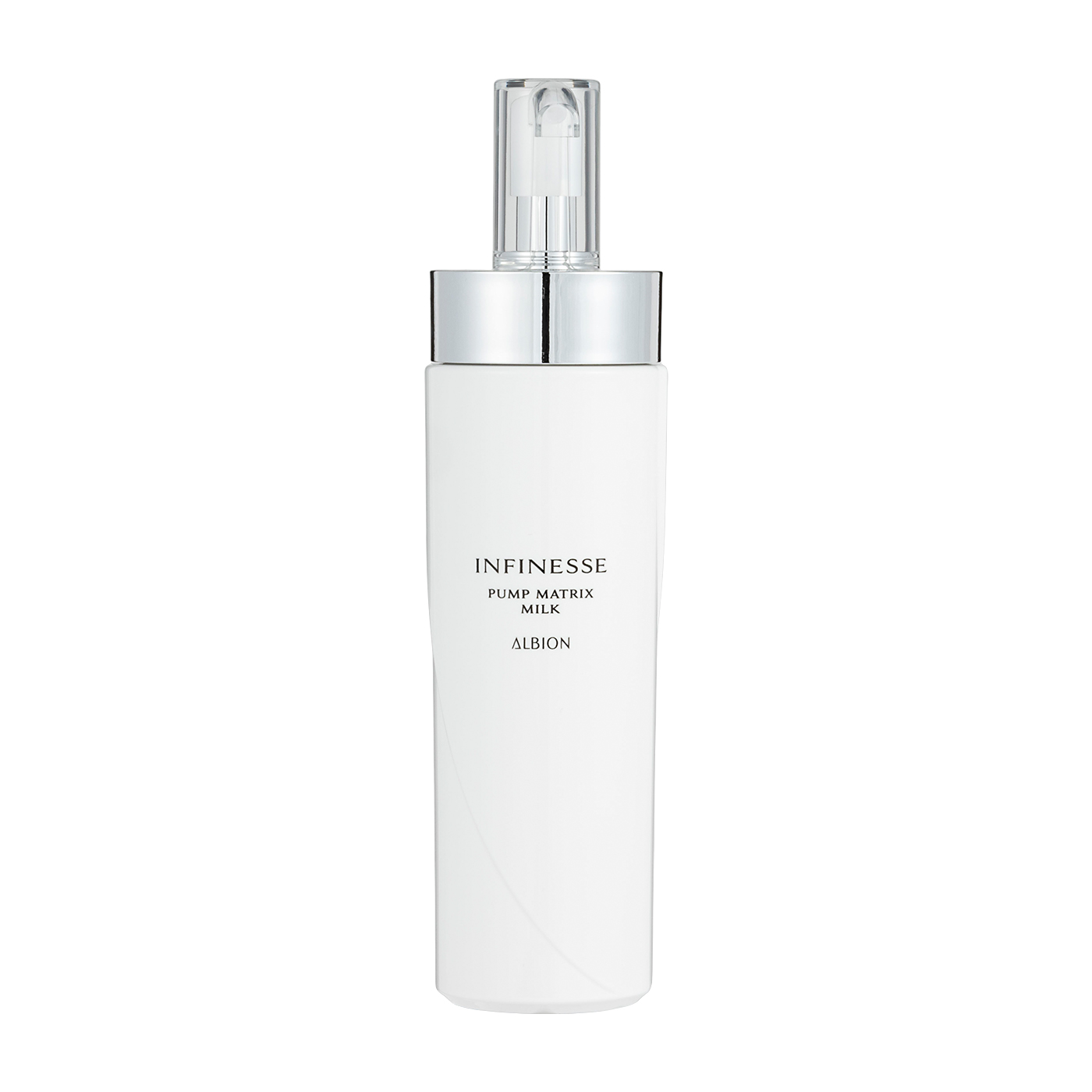アルビオンの「ALBION INFINESSE パンプ マトリクス ミルク」は、香りと使い心地を重視したい40代までの人におすすめです。香りのよさ・つけ心地のよさのどちらも高評価を獲得し、上位商品のデパコスブランドの乳液と比べても使いやすさは好評でした。検証した結果、塗布4時間後の肌水分量は28.76も増加。水分キープ率は105.68%と高かったので、乳液だけ使う人でも、肌に与えた水分をしっかり保持しやすいでしょう。検証でチェックしたビタミン・セラミド・アミノ酸といった整肌成分が見当たらず、成分分析はいまひとつの評価に。そのうえ、エタノールの配合量が多いと予想できるため、肌が敏感なときの使用は控えたほうがよいでしょう。一方、エイジングケアサポート成分は確認できたため、年齢肌をケアしたい人にはおすすめできます。やさしいフローラルな香りも特徴的。もったりとしたテクスチャながら、実際に使うと肌にスッと伸ばせました。モニターからは「しっとり感があった」と、塗布後の肌の質感に満足の声が。検証で付着したビーズは平均1.25個と少なく、モニターからもベタつきはほとんど指摘されませんでした。容器は少し重いものの、ポンプ式で適量をサッと取り出せました。デパコスブランドの乳液が気になる人は、ぜひチェックしてみてください。