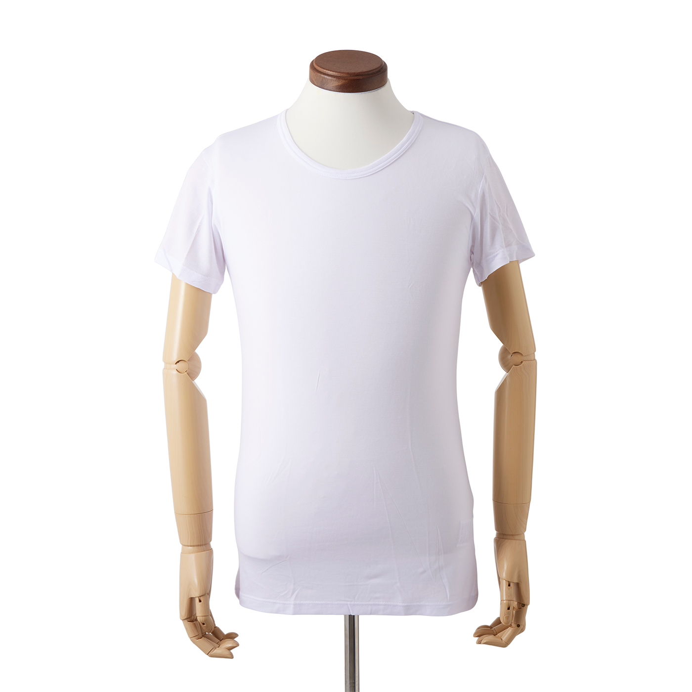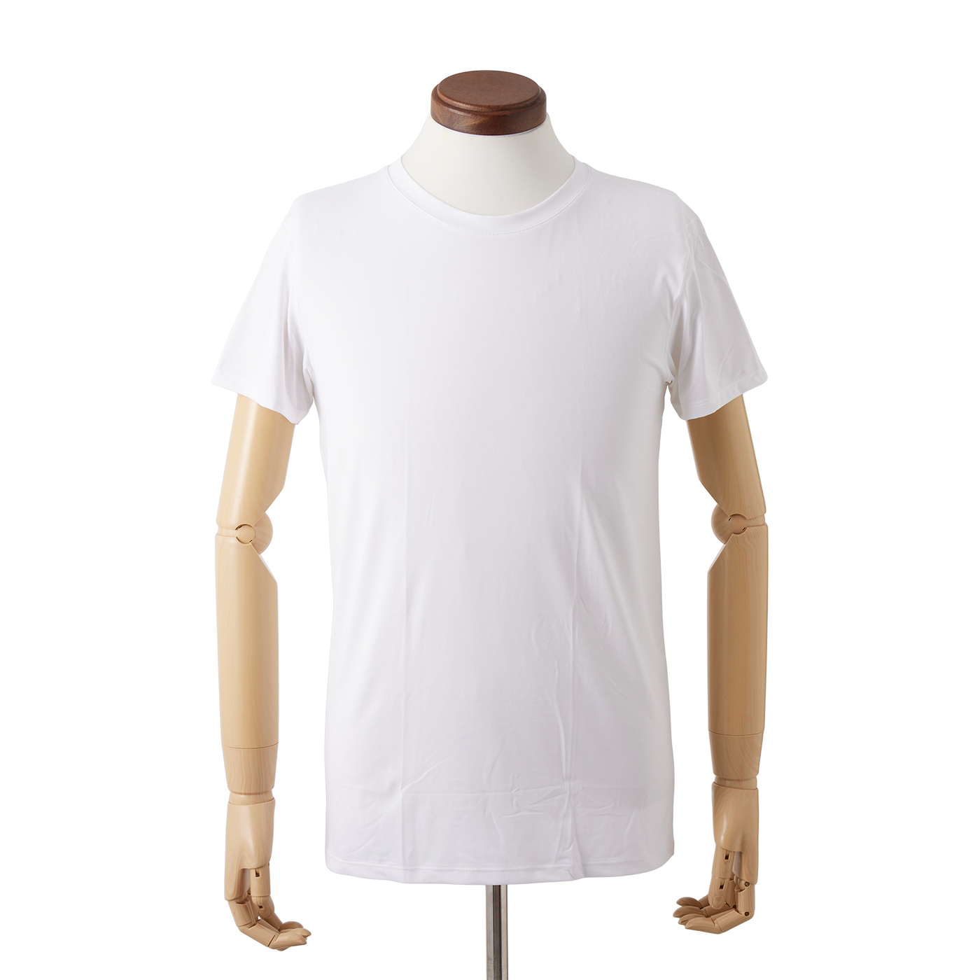 ユニクロの「エアリズムクルーネックT」は、機能性インナーで知られるブランドが展開する定番の冷感インナー。さらっとした肌触りと通気性に配慮されたカジュアル仕様で、日常使いや軽い運動にも取り入れやすい1枚です。着心地は非常に良好で、モニターからは「側屈などをしても擦れなかった」「チクチク感なく、ゆとりもあって動きやすい」との声が寄せられました。生地の滑らかさと着圧感が少ない着心地のため、動作を妨げず日常的な動きにも対応しやすいといえます。べたつきにくさでは通気性・吸水性がともに平均的ですが、乾くまでの時間が遅めで、汗の量が多い場面ではべたつきが気になることも。接触冷感もQ-maxが平均0.206W/cm2とわずかなひんやり感を得られる程度で、冷感を重視するのであればほかの商品を検討しましょう。動きやすさと肌あたりを重視して選ぶ人におすすめな1枚です。