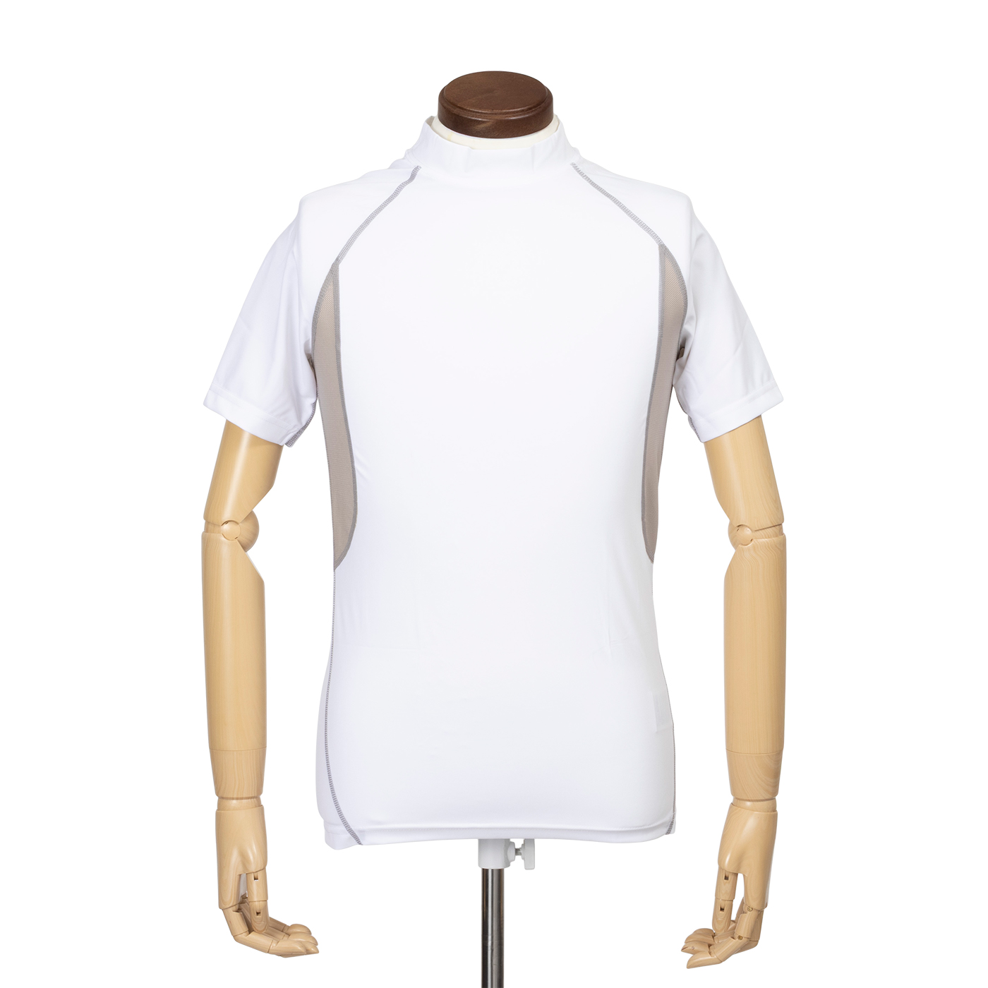 おたふく手袋の「BODY TOUGHNESS デュアル3Dファーストレイヤー ショートスリーブ クルーネックシャツ」は、作業用インナーに強みをもつメーカーが展開する冷感インナー。消臭・吸汗速乾・メッシュ構造を備えた通年対応モデルで、価格を抑えつつ機能面も充実しています。通気性の高さが目立ち、風が通りやすい構造のため蒸れにくいでしょう。また、汗の乾きも比較的速く、吸水性も標準的のため、実測値から見ても、空気や湿気がこもりにくく、衣服内の快適さをサポートできます。接触冷感は、Q‑Max値が平均0.17W/cm2、10回洗濯後も平均0.159W/cm2とわずかな低下にとどまりましたが、ひんやり感はまったく得られませんでした。着心地でもモニターからは「チクチク感がある」との声があり、長時間の着用には不向きでしょう。チクチクとした肌触りが気になりますが、汗による蒸れを避けたい方には十分実用的な選択肢といえるでしょう。