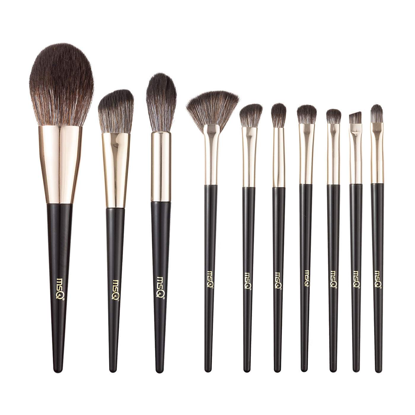 「メイクブラシ 10本セット」は、ブラシに特化しているメイクアップブランドであるEIGSHOWの商品。細くて柔らかな毛質でチクチクしないで使用できると謳っています。パウダーブラシなどのフェイス用ブラシからアイメイクなどのポイントメイク用ブラシまで10種類のブラシがセットに。さまざまな大きさのブラシが揃っており、メイクの部分によってブラシを使い分けられるのが魅力のひとつです。細めの柔らかい毛で「肌あたりがしっとりと気持ちよい」とモニターから好評でした。ブラシ部分の柔軟性もあり、肌に吸いつくようにフィットするのも好印象です。また、ブラシの長さは13〜14cmあるため、手にフィットして安定しやすいですよ。実際に使用してみると、粉含みはよいものの、やや薄めに発色したため、自然なメイクに仕上げたい人に向いているでしょう。肌に吸いつくような柔らかいブラシを探している人におすすめのメイクブラシです。