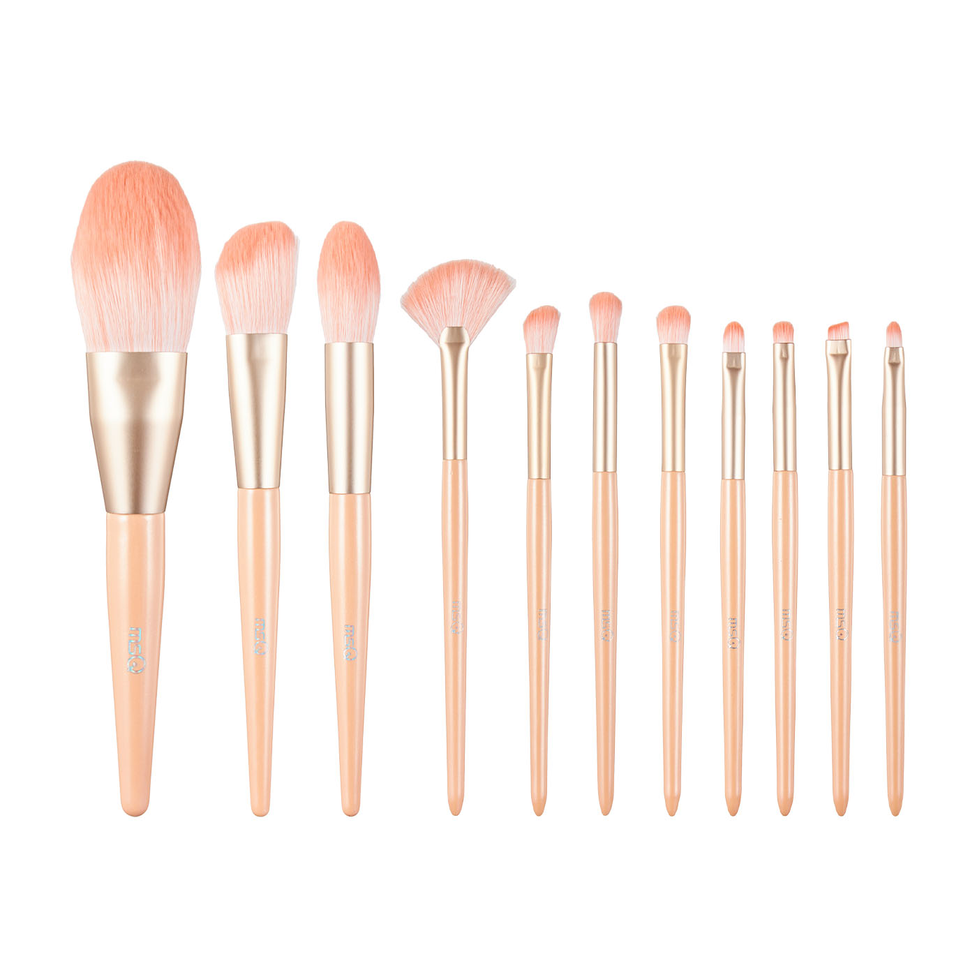 「11本メイクブラシセット」は、メイクアップツールに特化したビューティー&コスメアクセサリーのグローバルブランドであるSIXPLUS TOKYOの商品です。このメイクブラシの大きな魅力は、ベースメイク系のブラシからポイントメイクのブラシまで豊富な種類が揃っていること。なかでも、チークブラシは小と中の2サイズあり、理想の仕上がりに合わせて大きさを選べます。小サイズで頬の中心に色付けて、中サイズで周りをボカして使うのもよいでしょう。コンシーラーブラシやハイライトブラシも入っているため、細かい部分もブラシを使ってメイクしたい人にうってつけの商品です。実際に使用してみると、しっとりとした柔らかい感触で、モニターからは「チクチク感がなくて、なめらかでやさしい肌あたりだった」との声が挙がりました。また、ブラシの長さは12〜15cmと長めで扱いやすいのもうれしいポイント。ブラシの粉含み・色付きがよく、テクニックレスでチークやアイシャドウの見たままの発色を叶えられるでしょう。さらに、ブラシの柔軟性もあるため、方向を変えずともブラシが顔にフィットするのも魅力のひとつ。テクニックなしで直感的に使えるため、メイク初心者にも向いていますよ。ブラシの種類の充実さにこだわりたい人にも、ブラシの肌触りや性能にもこだわりたい人にもおすすめのベストバイ・メイクブラシです。