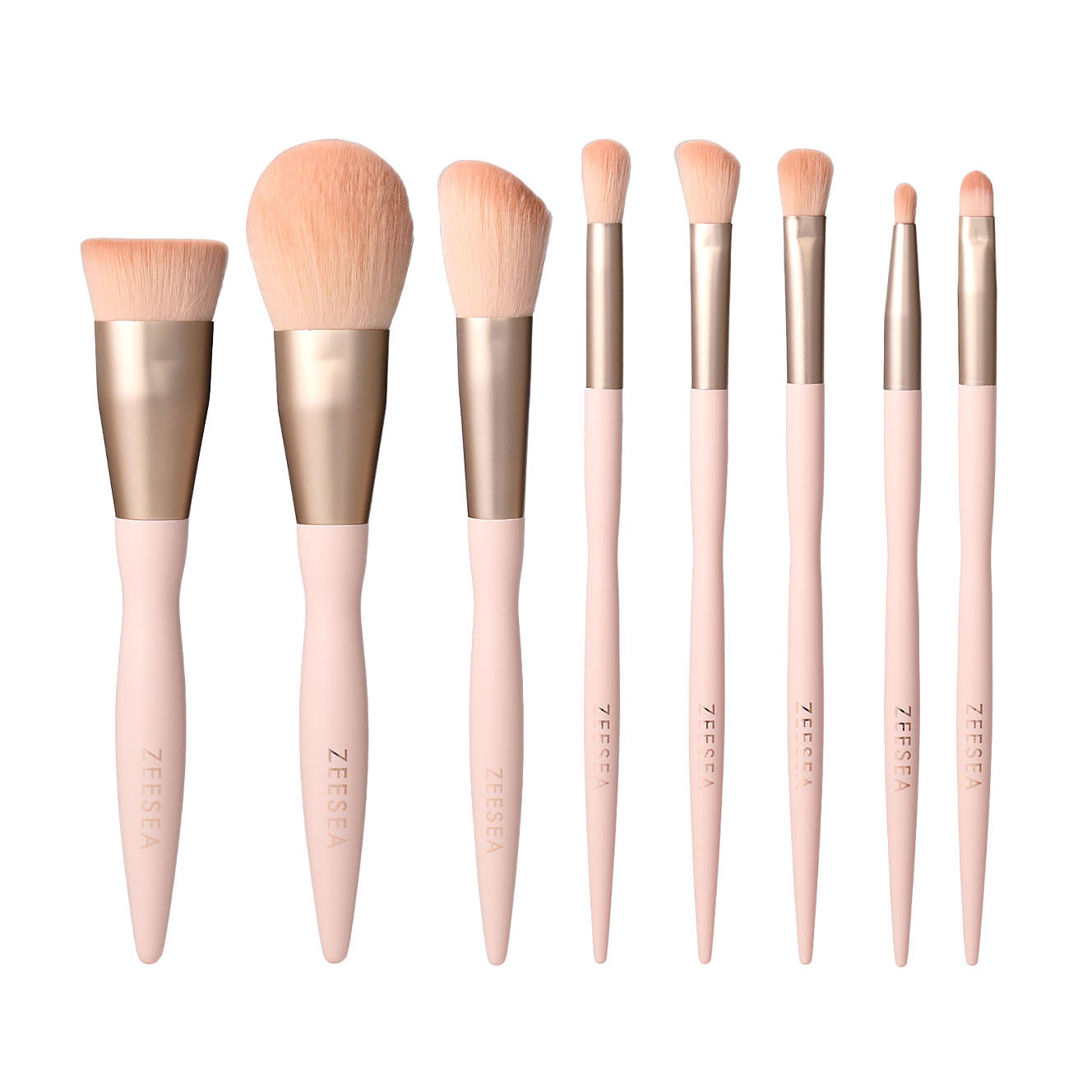 ZEESEA COSMETICSのZEESEA「ローズクラウド メイクブラシ」は肌あたり・使い勝手がよく性能のよいブラシがほしい人にはおすすめのメイクブラシセット。検証でモニターが使用したところ、アイメイク用・フェイス用どちらのブラシも「チクチク感がほとんどない」と肌あたりのよさが好評でした。実際に手に持ってみると、持ち手の長さ・太さ・重さともにちょうどよく使いにくさを感じない点は好印象。毎日使用しても負担になりにくいでしょう。また、検証では粉含みがよいうえに色づきも良好と評価されたため、一度でしっかり顔にパウダー・アイシャドウをのせたい人におすすめできる商品といえます。ただし、ブラシのラインナップの少なさはデメリット。8本入りのうちフェイス用は1本しか含まれていないため、フェイスパウダー用とチーク用でブラシを分けて使いたい人は別でブラシを追加購入する必要があります。とはいえ、肌あたり・性能がよいうえに使いやすい点は強み。ラインナップの8本のうち自分の使いたいブラシが含まれていれば、購入を検討する価値は十分にあるメイクブラシセットです。