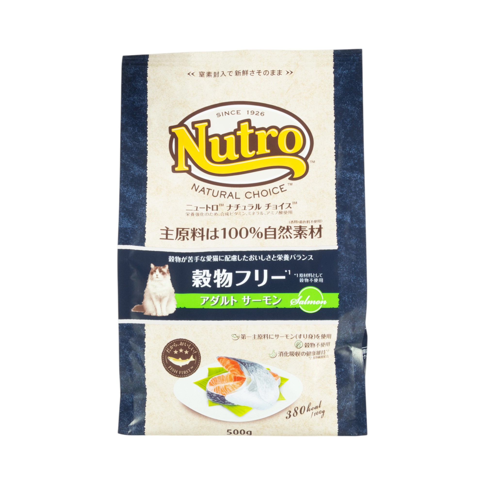 「Nutro ナチュラル チョイス 穀物フリー アダルト」は、マースジャパンリミテッドが提供する成猫向けの総合栄養食のキャットフード。穀物不使用でサーモンを主原料とし、健康な消化吸収や腸内環境の健康維持を考慮した配合が特長です。