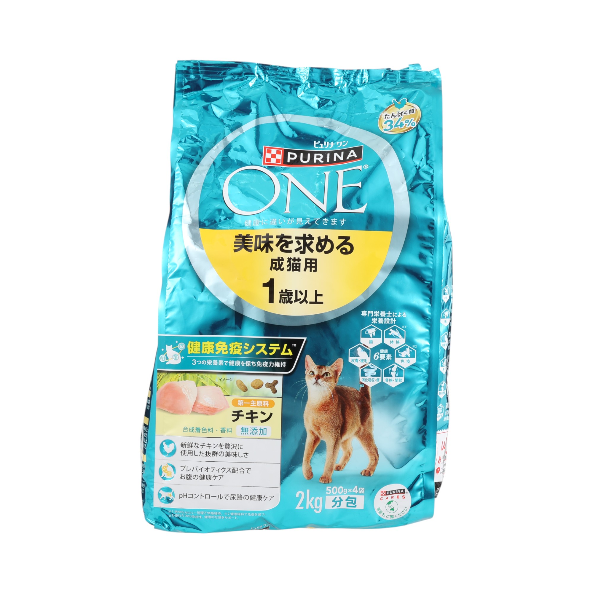 「PURINA ONE 美味を求める成猫用」は、ネスレ日本が提供する成猫用キャットフード。新鮮なチキンを主原料とし、総合栄養食として栄養基準を満たしています。消化に優れた原材料とプレバイオティクスの配合で、健康免疫システムや下部尿路の健康も考慮。合成着色料・香料無添加のオーストラリア製の商品です。
