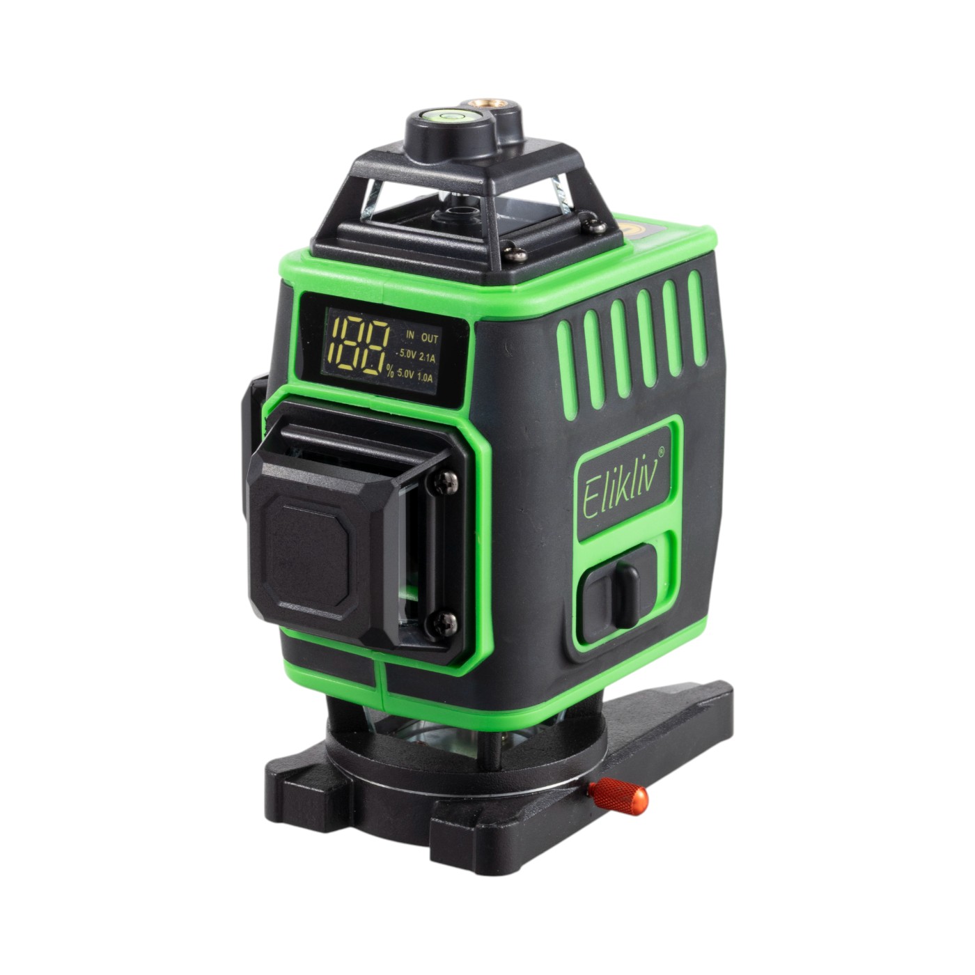 Eliklivの「レーザー墨出し器 R16 Pro」は、フルラインを照射できる商品。水平・垂直のいずれかに同時に2ライン照射できるので、最大16ライン照射することができます。4,500mAhのバッテリーが2個付属するほか、リモコンやエレベーター三脚などの付属品が充実しています。水平ラインの精度が高く、誤差は0.08mmとごくわずかでした。垂直ラインの誤差は0.98mmとわずかとは言えないものの、DIYで使うなら十分な精度です。どの角度からでも正確なラインを引くことができ、作業効率が向上。細かな調整が必要な場面でも使いやすいでしょう。ラインの太さは水平ラインが3.15mm・垂直ラインは3.09mmとやや太めでしたが、明るさは水平・垂直どちらも40lx以上で、明るい環境での視認性が良好。明るい屋内でもストレスなく作業を進められそうです。水平のラインが正確に引けるため、家具の設置や壁の装飾など、細かな作業を行う人に向いています。ラインが多いものを探している人は、ぜひチェックしてくださいね。